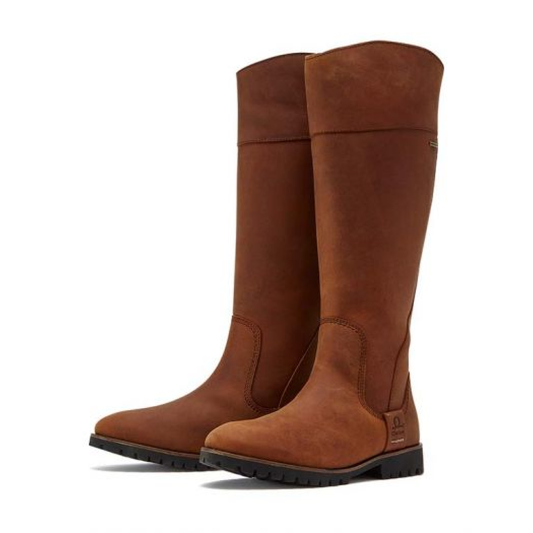 Expertly-crafted from 100% waterproof premium leather in an autumnal walnut hue, these stylish and warm knee-high boots are a simple design with a curved top to accentuate the leg. They have a breathable microfibre lining, sole spring poron performance cushioning, which is anti-bacterial and offers maximum comfort and shock absorption, and they sit on a durable rubber cleated sole.