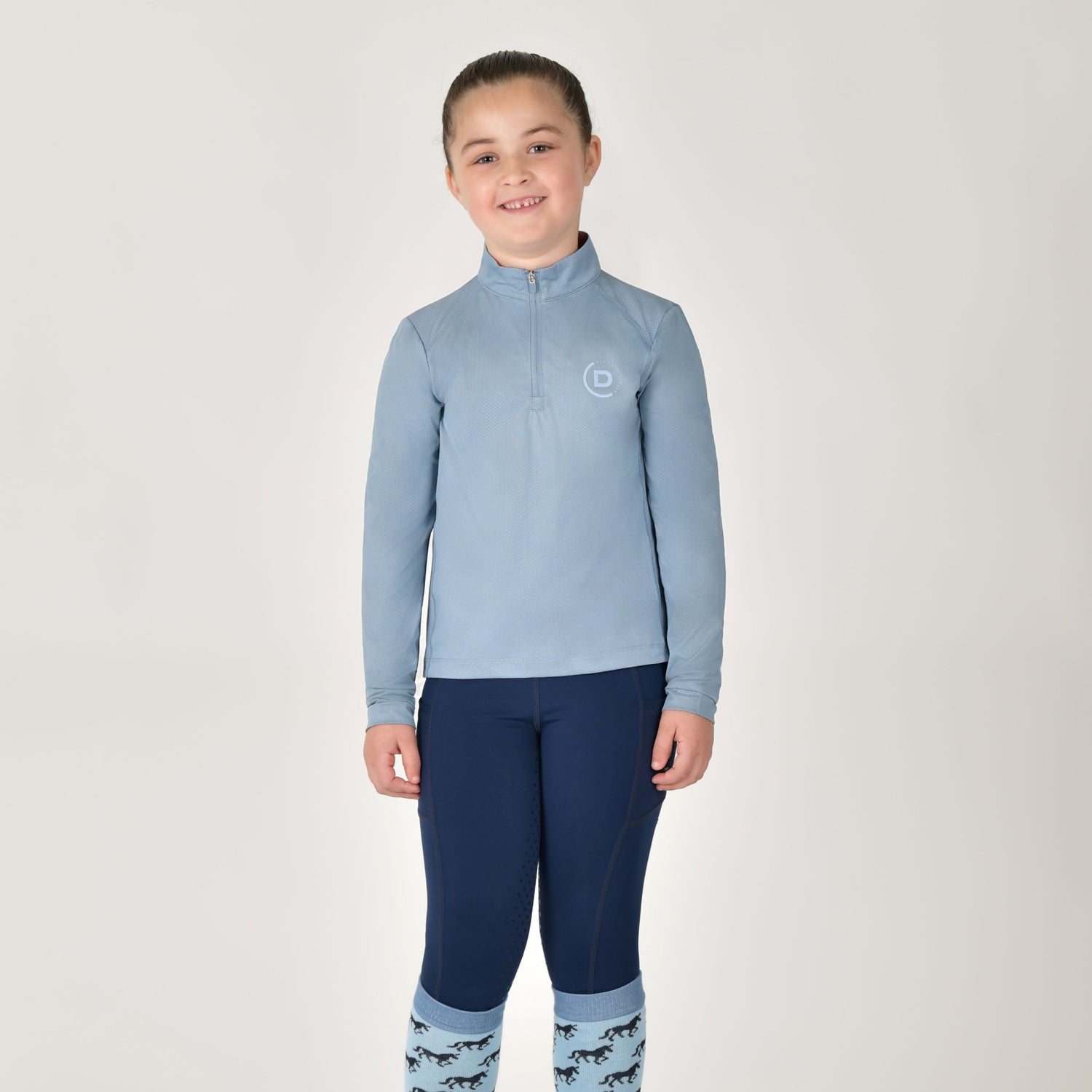 Tough against the elements and soft on you, meet the Dublin Kids Breathable Long Sleeve Riding Top. This relaxed fit style top features Comfort Dry Technology that provides moisture control keeping you comfortable all day, making this perfect to wear as a layering option or as a stand alone piece. Perforated panels placed where you need them most, enhance breathability and airflow as well as adding style and offers UPF 50+ sun protection. This long sleeve top has a 1/4 zip placket and subtle Dublin 'D' silicon branding on the left chest.