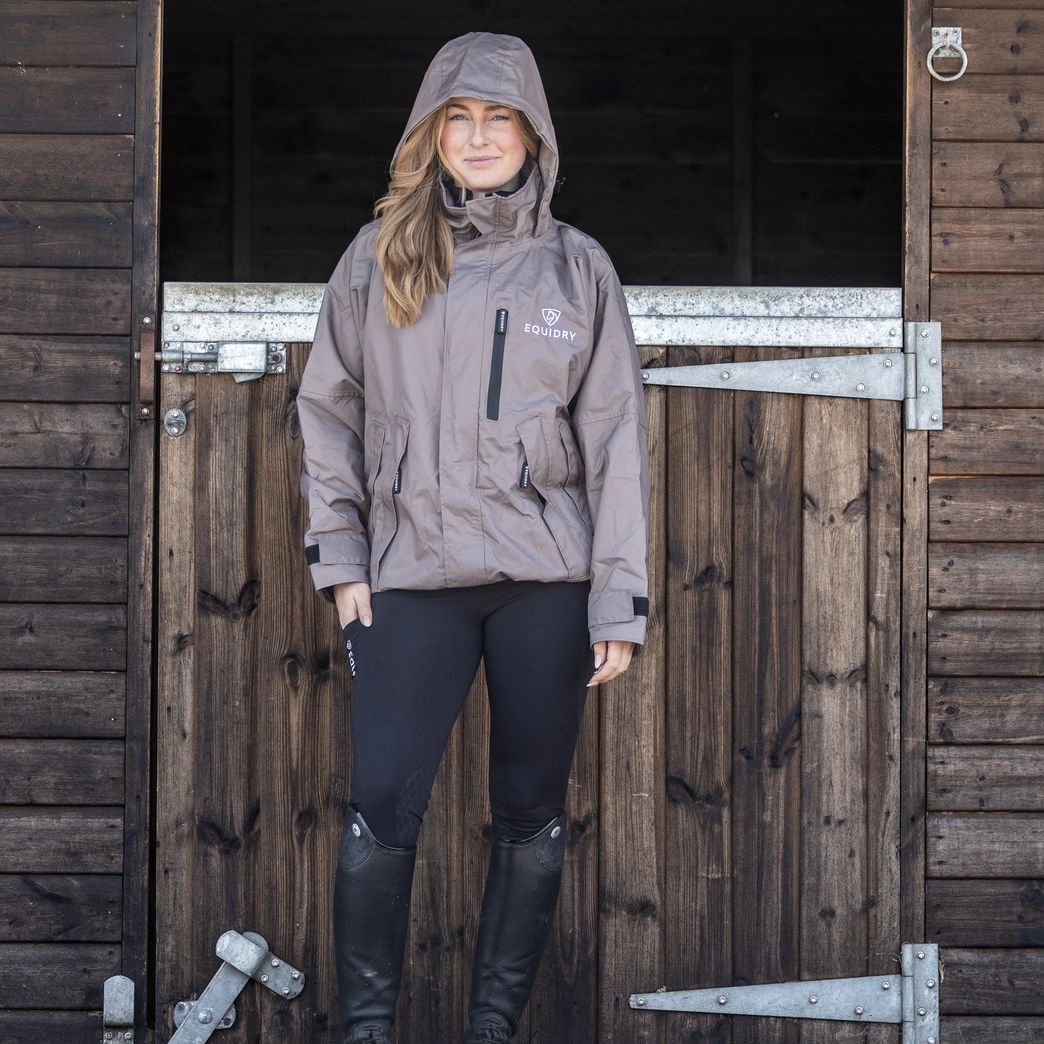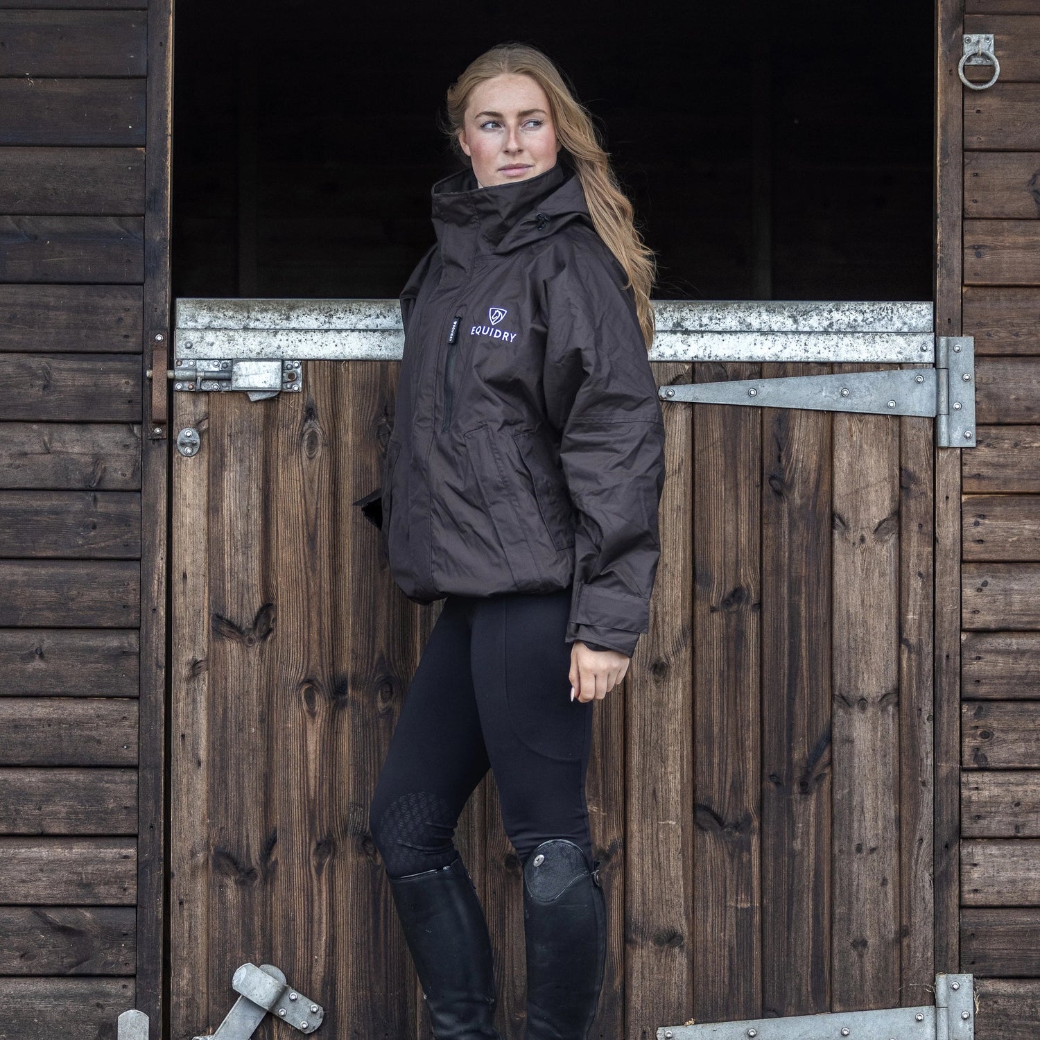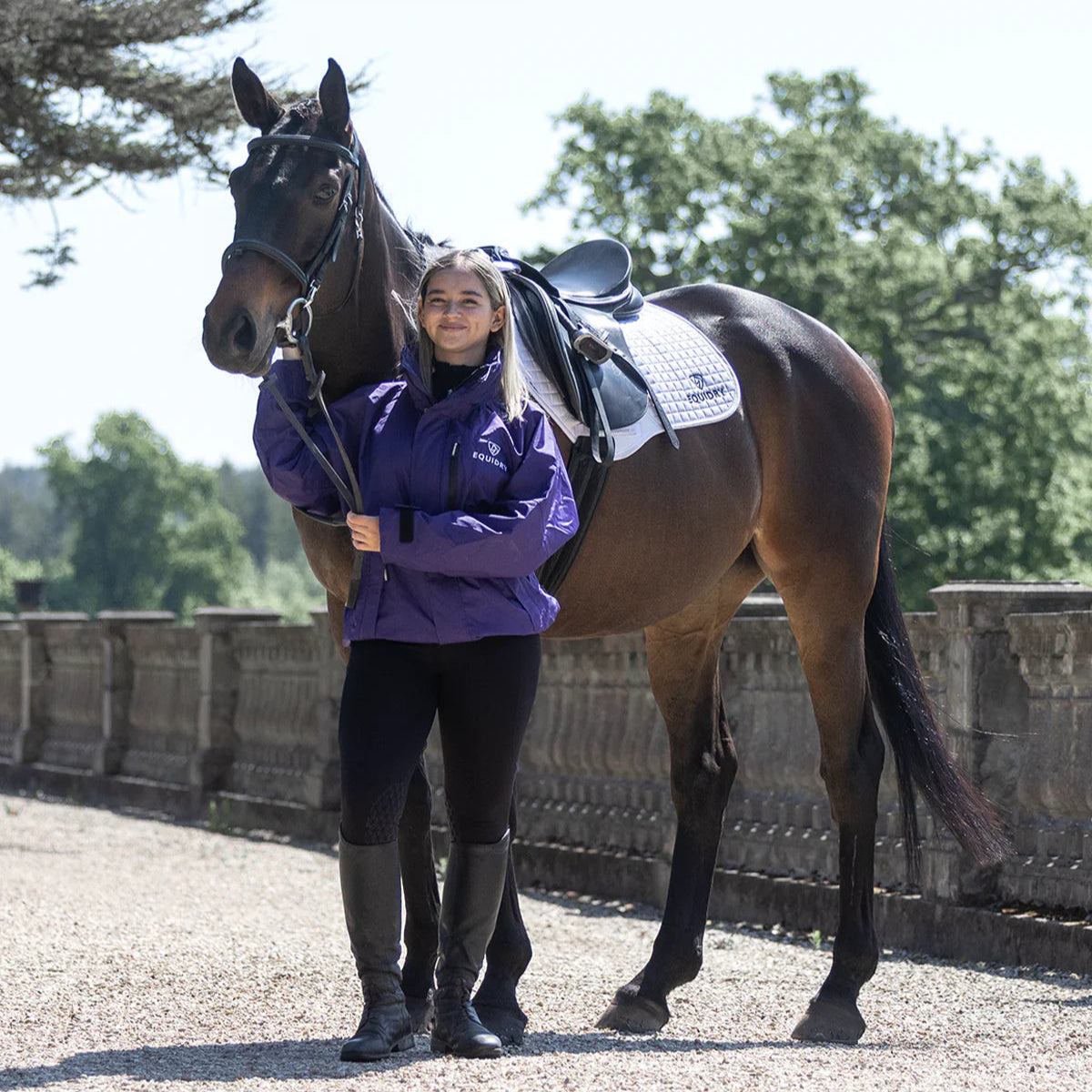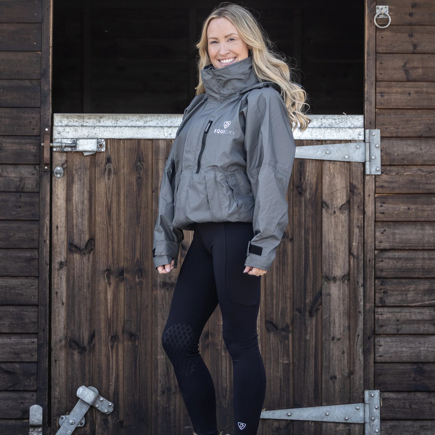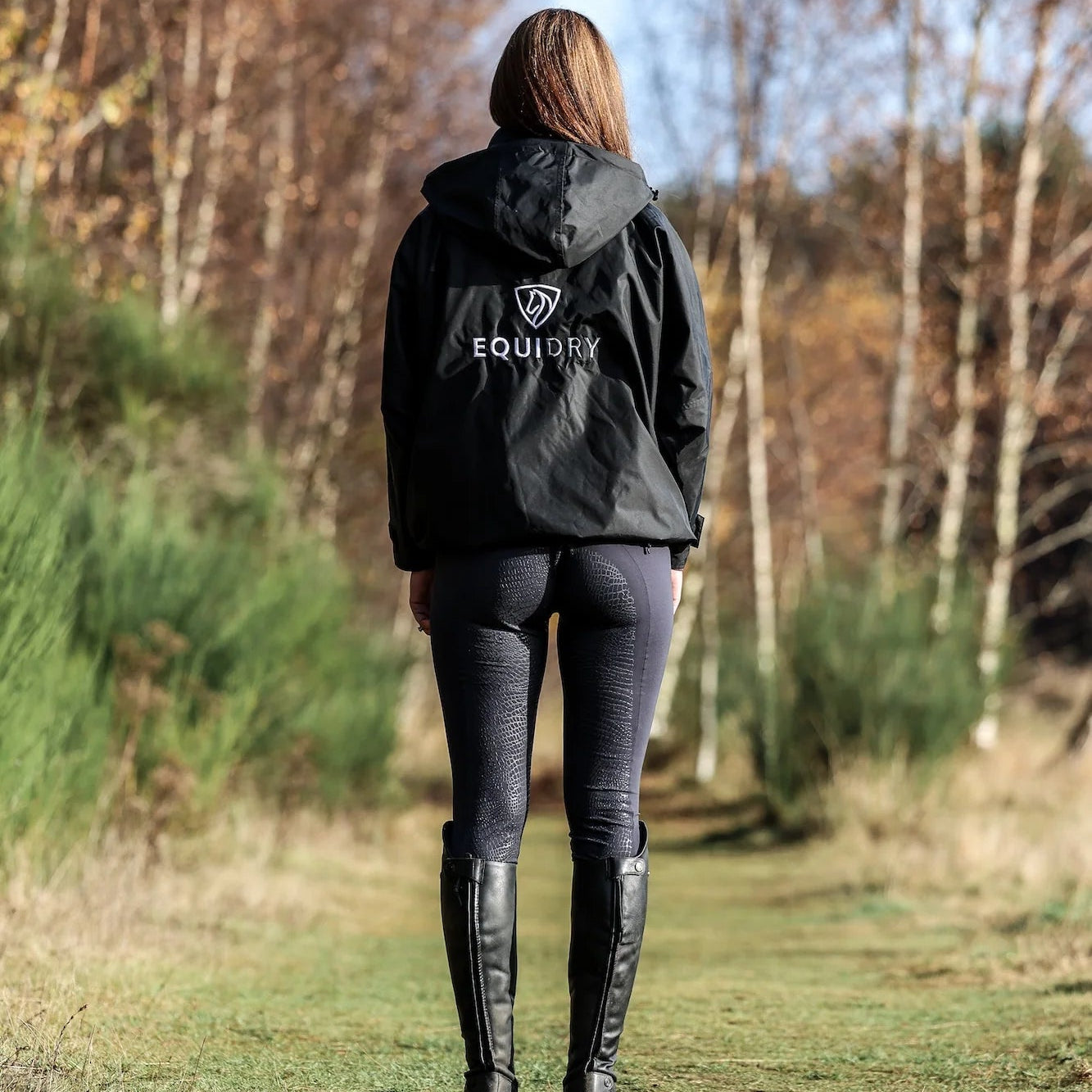 The EQUIDRY Shortie is a short, blouson-style jacket designed with advanced EQUIGUARD® technology, offering an impressive 20,000mm waterproof rating for outstanding protection against the elements. Its breathable mesh lining provides comfort in warmer weather while also allowing versatility for layering in colder conditions. The oversized, unisex fit ensures freedom of movement with ample room for additional layers or a body protector.