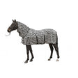 Introducing the HKM Fly rug -Zebra- with neck, the perfect solution for keeping your horse protected from insects and the elements. Made from 100% polyester, this rug is durable and hard-wearing, with high wind resistance to ensure it stays in place. The superb quality knitted fabric is easy to care for, and the rug is machine washable at 30 degrees and suitable for the dryer. The zebra print pattern is a proven insect deterrent, making it ideal for use during the summer months. The rug features a fixed full neck, tail guard, belly guard, and extra-long sides for maximum coverage. The double front fastenings and front metal fastenings ensure a secure fit, while the adjustable neck cover and tail strap provide added comfort for your horse. Upgrade your horse's wardrobe with the HKM Fly rug -Zebra- with neck today!