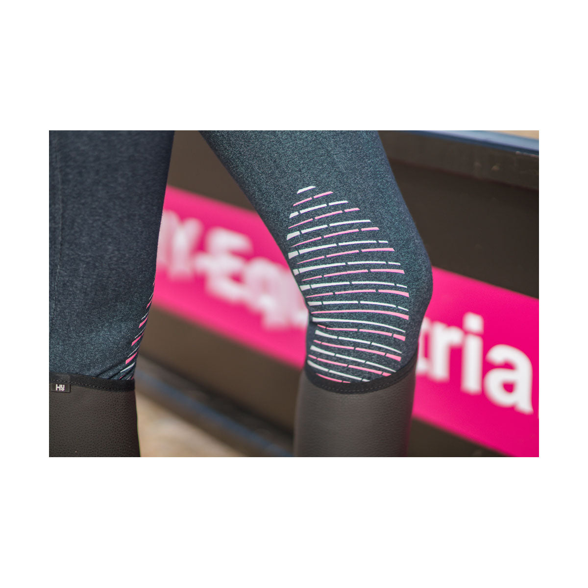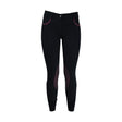 A stylish denim look breech that are perfect for riding. These breeches enhance comfort and fashion to give a great teenager look. Colourful sporty strip pattern silicone knee patches feature on the inner leg to increase grip and flexibility in the saddle. The breech also features YKK zip pocket, pink ribbed detailing on the front pockets. No bulk stretch hem ankles also feature to increase comfort of the ankle. This breech is perfect for a young rider wanting to look and feel cool on their pony.