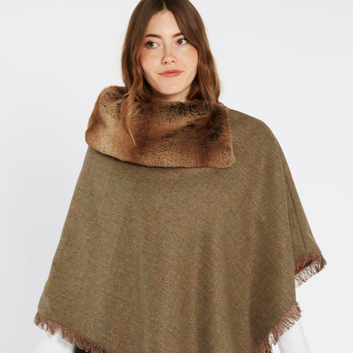 Get lost in the gloriously soft collar on our Silverfir poncho. Standing up or folded down, it’s utterly snuggly and an eye-catching addition to this beautiful tweed layer. Throw over a knit with jeans or match with a Dubarry tweed skirt for a touch of simple sophistication.
