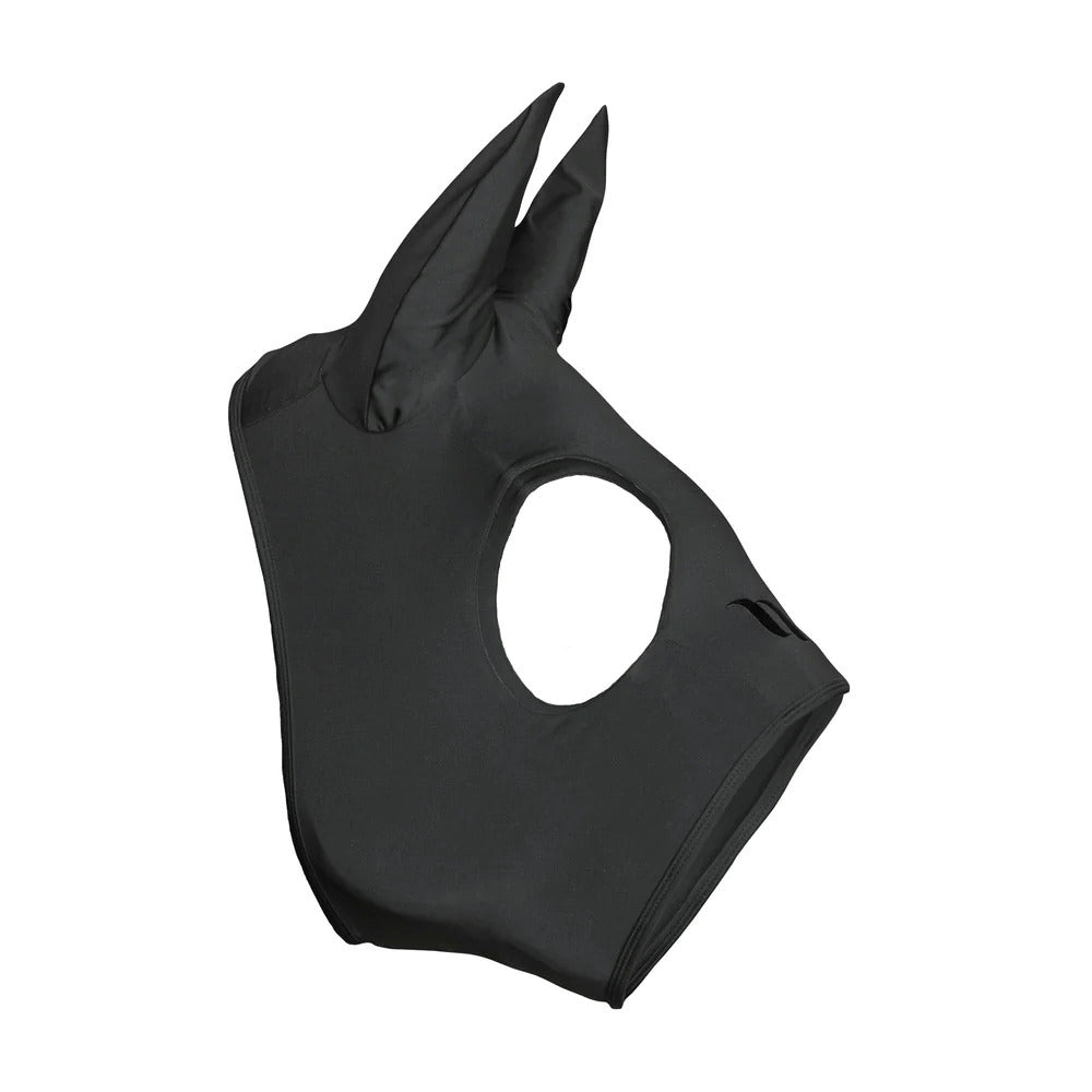 The 'Spirit' Soothing Hood with Ears is an elegant, jet-black horse mask that moulds to the horse's head. Because of its calming effect, it can help to alleviate stress and bring ease and relaxation to an apprehensive horse.