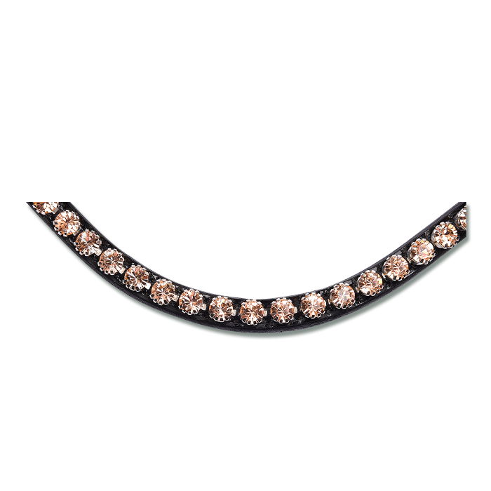 - Curved browband adorned with rose gold rhinestones for a sophisticated look