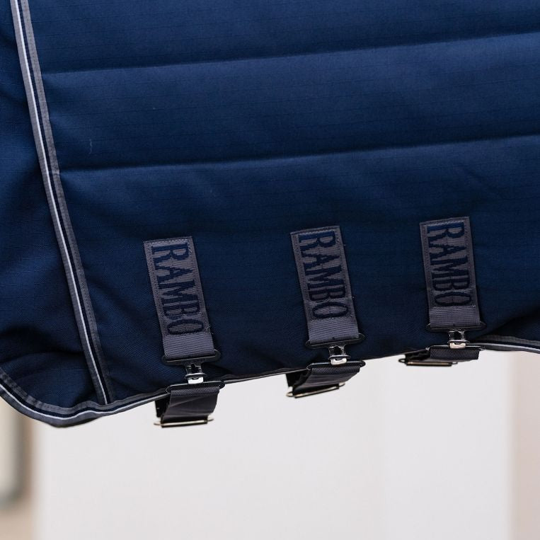 Horseware Ireland Rambo Optimo 200g Plus Stable Rug - Navy/Thunderstorm Grey/Silver / 5'6 ist auf Lager und wird versandt, sobald es wieder verfügbar ist