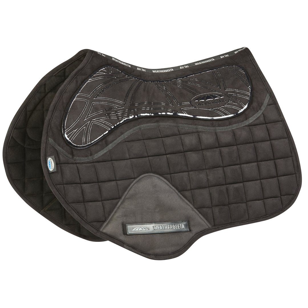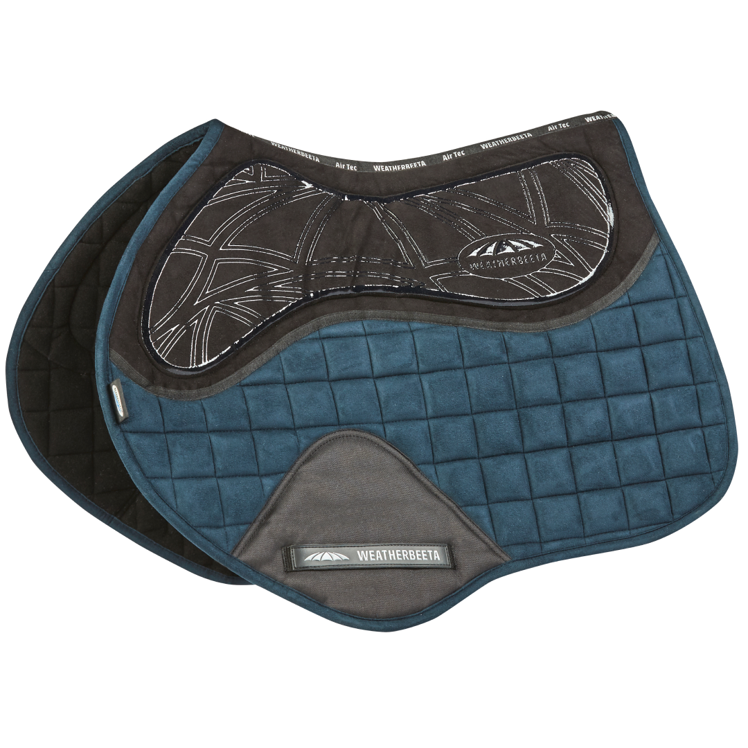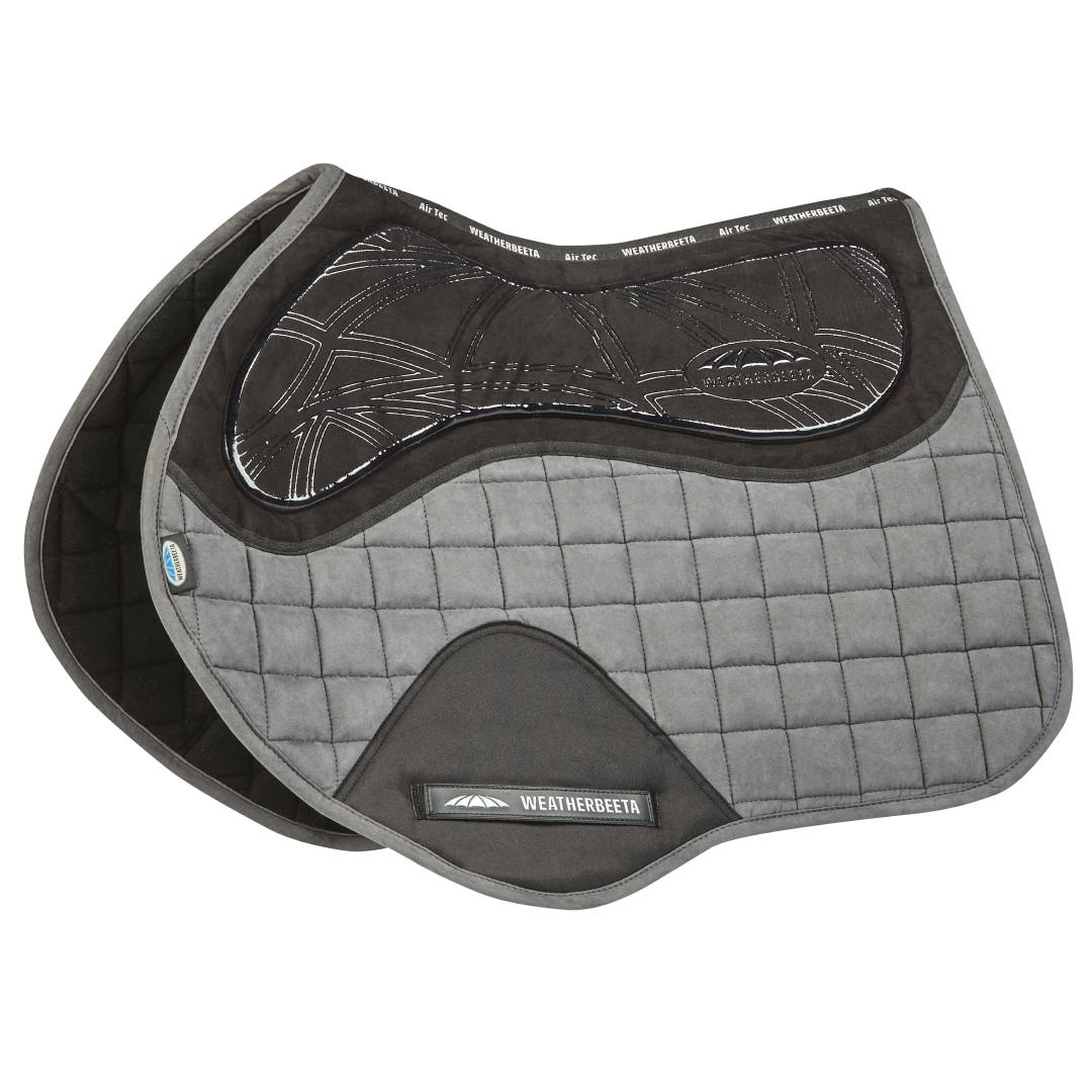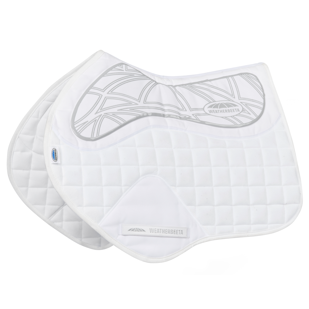 Das WeatherBeeta Ultra Grip Jump-Sattelpad verfügt über einen Silikongriff mit Memory-Schaum-Polsterung unter dem Sattel für ultimativen Komfort und Praktikabilität. Der abgedeckte Gurtschutz reduziert übermäßigen Verschleiß und sorgt für zusätzliche Haltbarkeit, und das strapazierfähige Wildledergewebe mit feuchtigkeitsableitendem Futter sorgt dafür, dass Ihr Pferd kühl, trocken und komfortabel bleibt. Passend für mehr nach vorne geschnittene Springsättel.