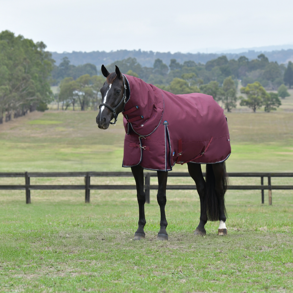 Weatherbeeta Comfitec Essential 50G Detach-A-Neck Turnout - Burgundy/Navy / 5'9 ist auf Lager und wird versandt, sobald es wieder verfügbar ist