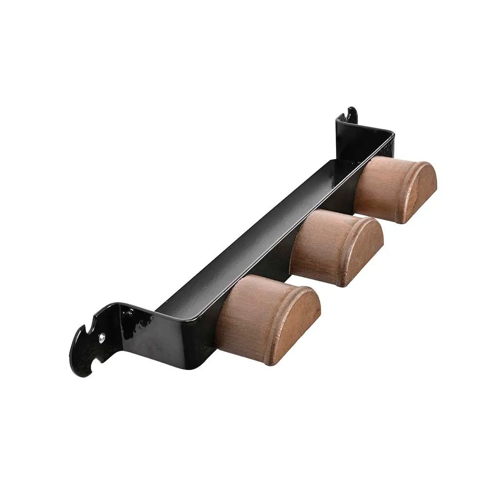 The great new and unique SHELFIE bracket is combined with the RETRO styled metalwork ends and wooden bridle racks to dramatically extend the RETRO range. Black STUBBYFINE coated metalwork and dark waxed wooden bridle racks.