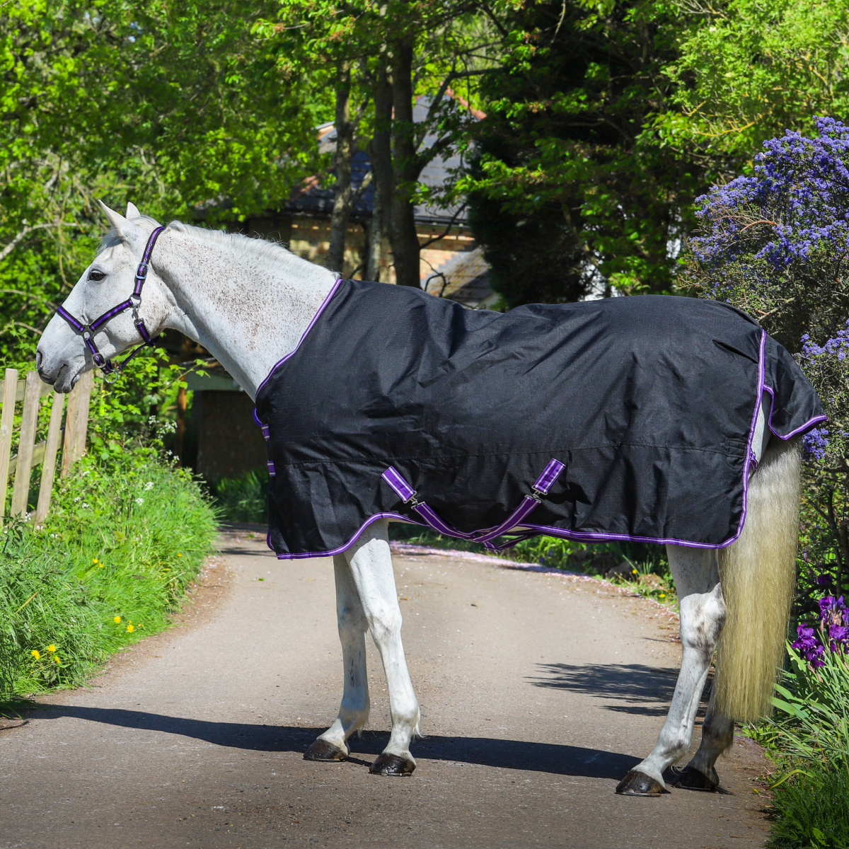 Diese 100 % wasserdichte Decke mit 100 g Füllung ist ideal geeignet, um Ihr Pferd warm und trocken zu halten.