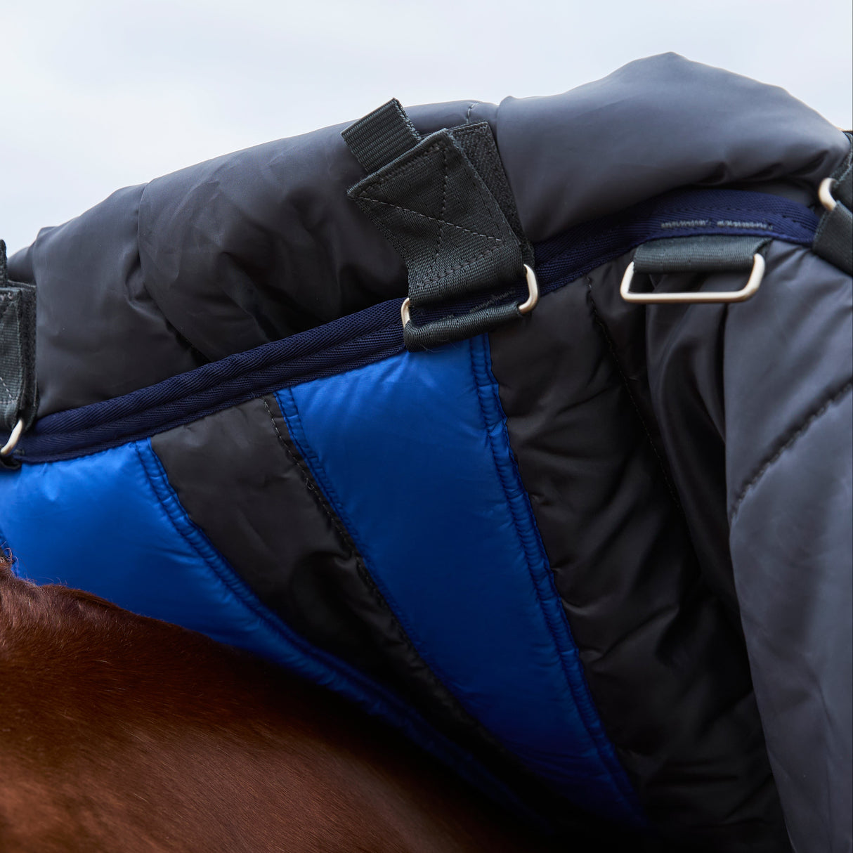 Not only does it keep your horse warm and dry, it also offers outstanding comfort with memory foam wither relief pads and a smooth, friction-reducing lining that enhances coat shine. With versatile, customisable features such as a detachable neck cover, quick-clip closures and adjustable leg straps, this rug adapts to your horse’s individual needs while allowing full freedom of movement and reliable protection in all conditions. Whether in the field or stable, your horse will remain cosy, secure and unrestricted, even in harsher weather.