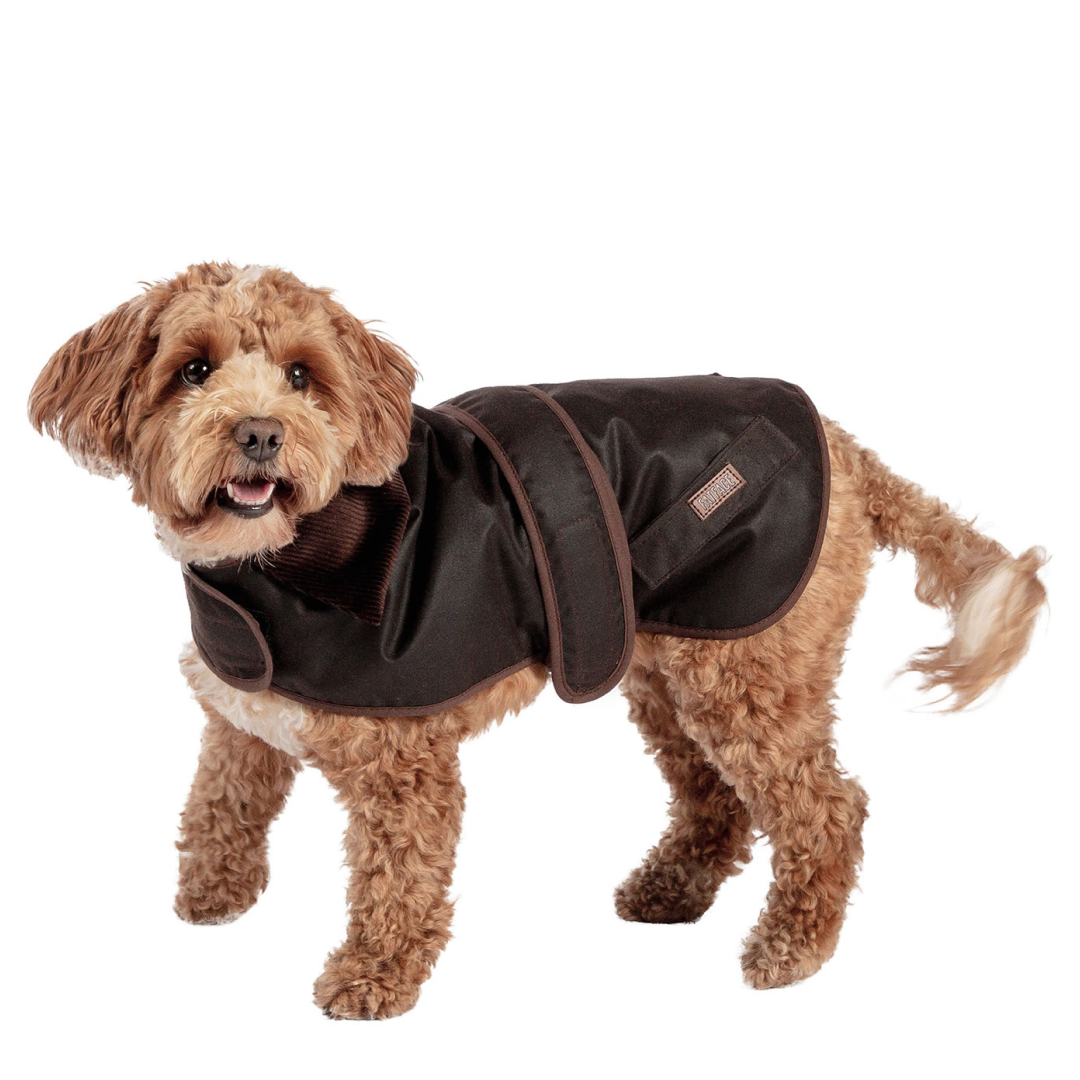 Danish Design Fatface Sussex Hundemantel – Dieser schokoladenfarbene Mantel ist vollgepackt mit vielen tollen Funktionen für pelzige Freunde. Hergestellt aus gewachster Baumwolle für eine natürlich wasserabweisende Außenseite und einem kuscheligen, karierten Futter in gebranntem Orange für Wärme. Der mit Kordel gefütterte Kragen kann hoch- oder runtergesetzt werden, um je nach Wetterlage mehr Schutz zu bieten, und ist mit verstellbaren Klettverschlüssen am Hals und in der Mitte ausgestattet. FatFace-Baumwollprodukte unterstützen einen nachhaltigeren Baumwollanbau.