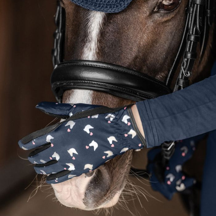 The Lucky Dora Riding Gloves are designed for young riders who need both comfort and style in the saddle. Featuring a fun all-over Lucky Heart print, these gloves are light, functional, and made for everyday riding. The elastic cuff ensures a secure fit, while the rein reinforcement adds durability for enhanced performance. These gloves provide excellent grip and flexibility, making them the perfect choice for young equestrians.