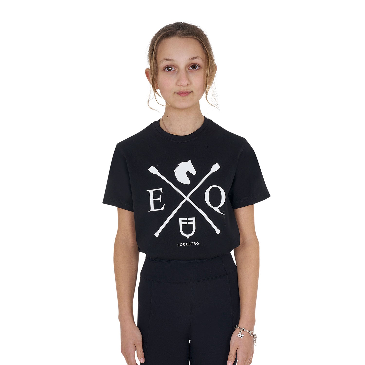 Equestro Girls' EQ Cotton T-Shirt - Black / 12 Years ist auf Lager und wird versandt, sobald es wieder verfügbar ist