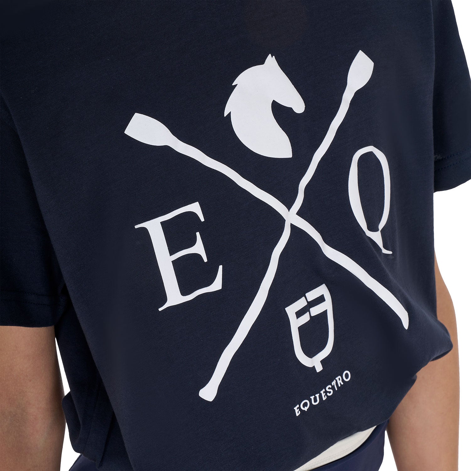 This slim fit girls' T-shirt from Equestro combines style and comfort with high-quality cotton fabric that ensures breathability and freedom of movement—ideal for horse riding. Its soft material absorbs moisture to keep her comfortable during active days. The minimalist design is enhanced by a contrasting chest print featuring the Equestro logo, adding a touch of timeless elegance to her wardrobe. Perfect for young riders who value both performance and style.