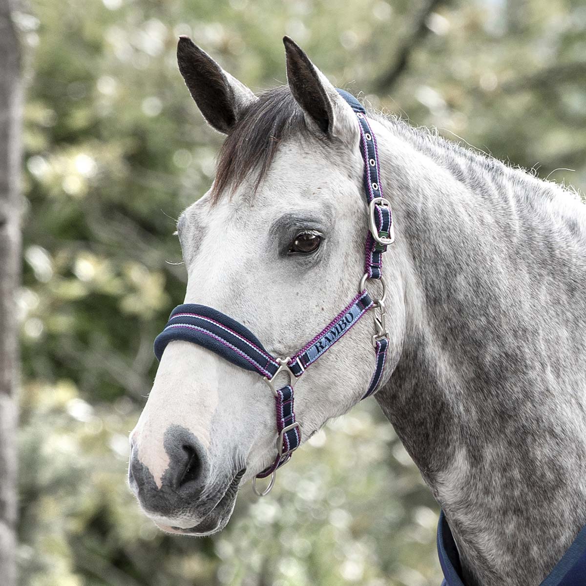 Das gepolsterte Halfter Rambo von Horseware Ireland besteht aus robustem Polypropylen-Gurtband und verfügt über eine weiche, mit Fleece gefütterte Nase und ein Genickstück für mehr Komfort. Dieses Halfter eignet sich perfekt für den täglichen Gebrauch oder den Wettkampf. Es ist in verschiedenen Größen und Farben passend zu Ihrem Pony, Pferd oder Cob erhältlich und kann mit anderen Artikeln aus der Rambo-Kollektion kombiniert werden. Seine Schnallen sind plattiert und die Schnallen und der Halsclip sind strapazierfähig.