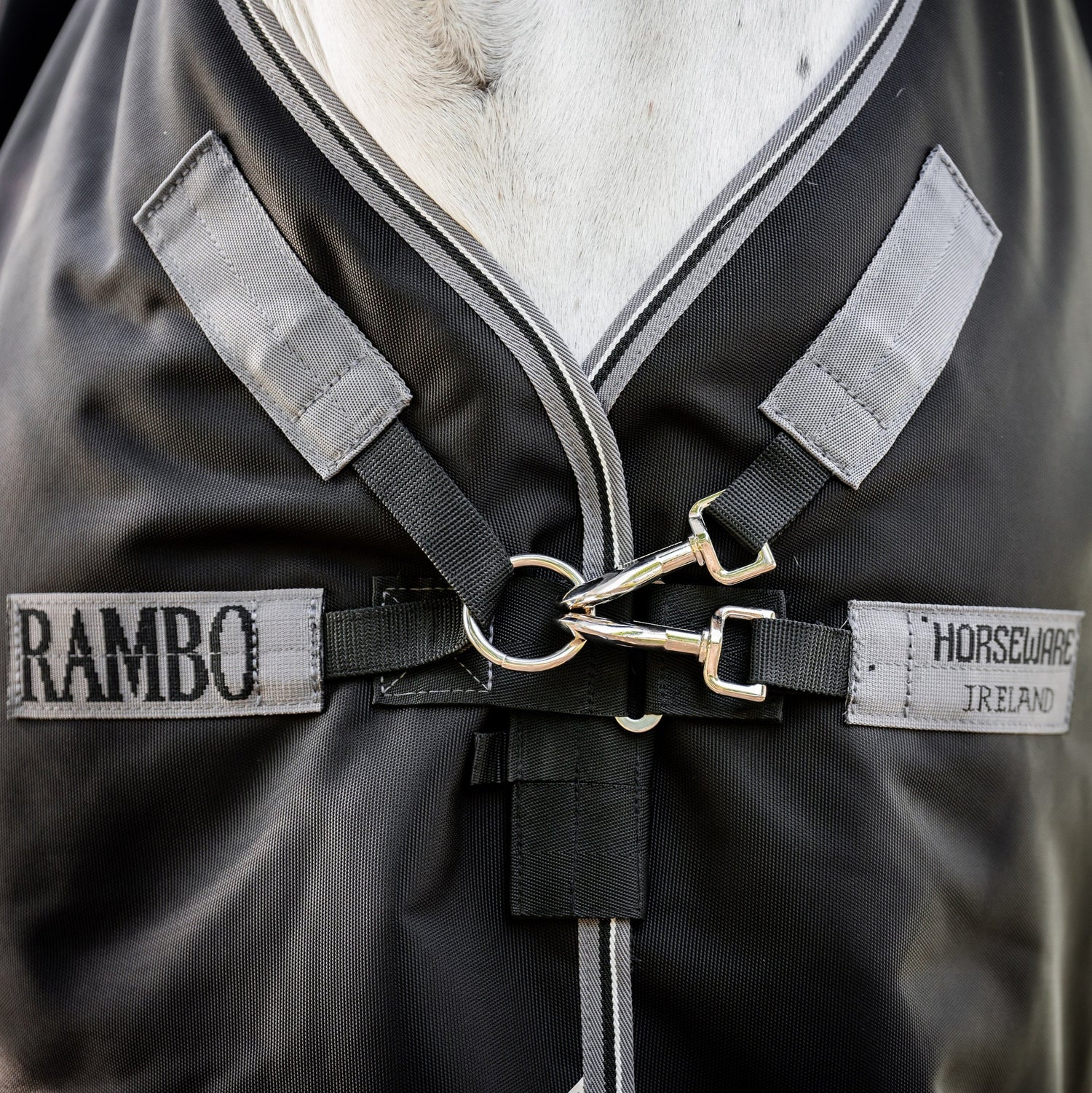 Horseware Ireland Rambo Supreme 1680D Turnout Vari-Layer 450g - Black/Thunderstorm Grey/Silver / 5'9 ist auf Lager und wird versandt, sobald es wieder verfügbar ist