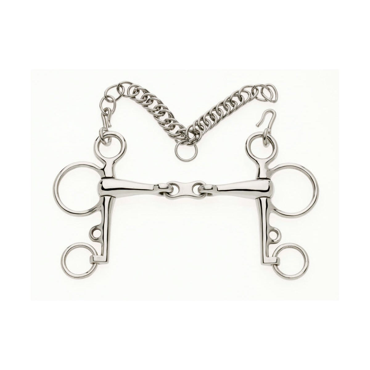 Das French-Link-Mundstück erweckt die Nussknacker-Wirkung zum Leben und verhindert Druck auf den Gaumen. Idealerweise mit zwei Zügeln verwendet, bei Verwendung von Rundungen kann jedoch auch ein Zügel verwendet werden.