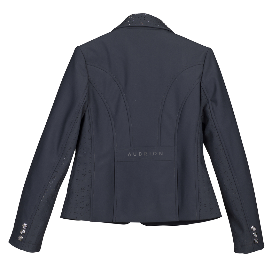 Die Shires Aubrion Children's Newton Show Jacket schimmert im Rampenlicht und hat eine moderne, sattellange Länge mit einer schlanken Konturform. Der mit Strasssteinen besetzte Kragen in derselben Farbe wird durch glitzernde Emaille-Knöpfe vorne in der Mitte und an den Manschetten ergänzt.