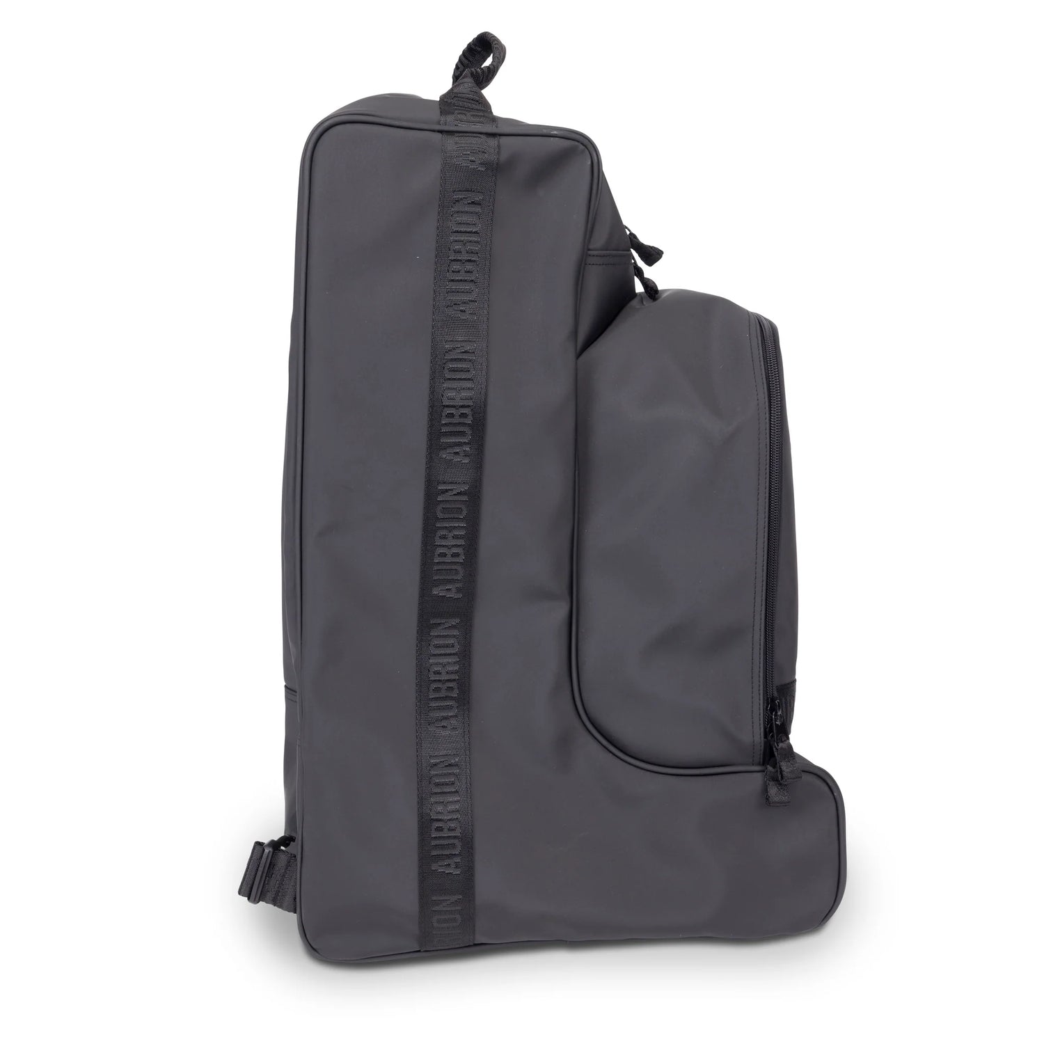 The sleek Aubrion React hat, whip & boot bag keeps all your key riding competition items clean and protected. The roomy main section benefits from an inner divider for individual boot protection. The zip opening hat compartment is fully padded and all sections have a smart jacquard lining. The wipe clean outer has a sporty feel and the bag is styled with an adjustable shoulder strap in smart signature web.