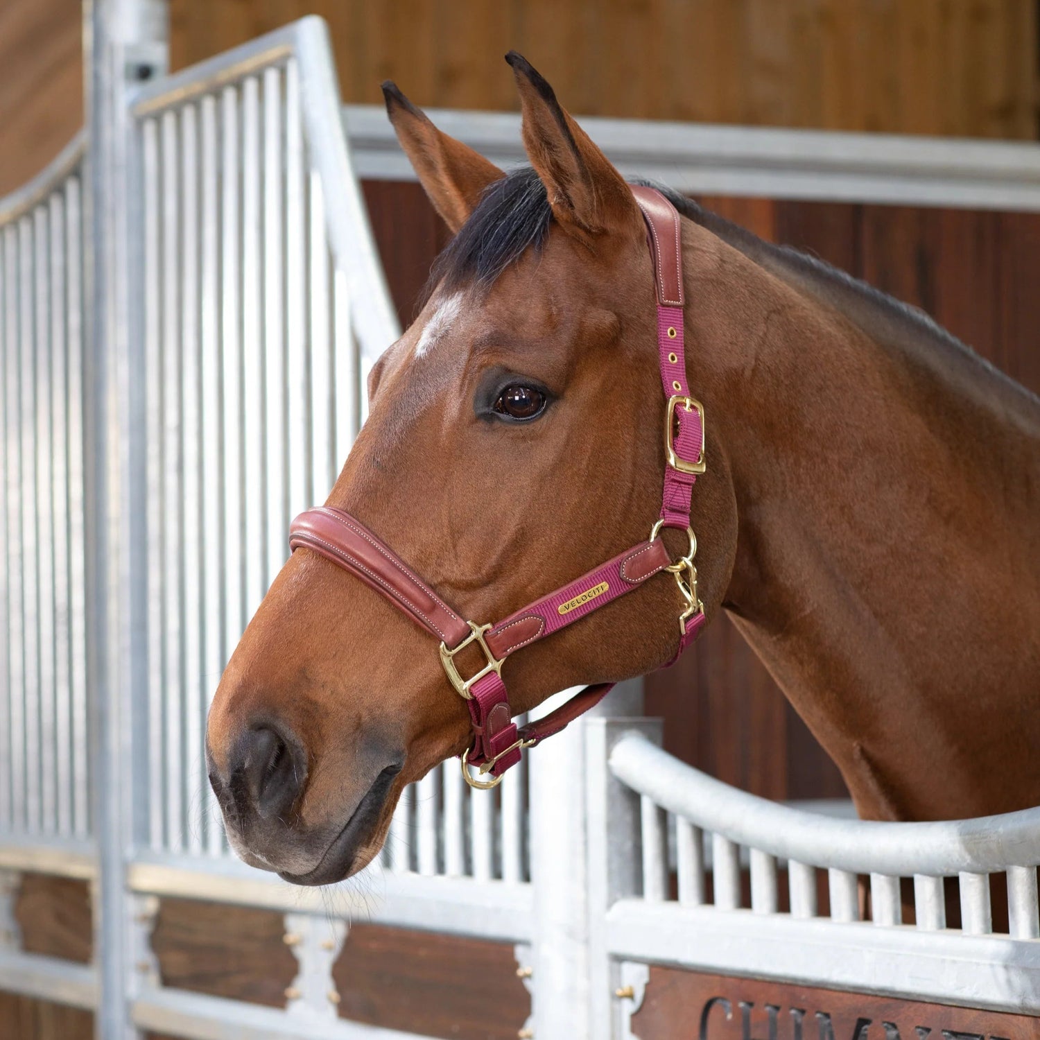 Anatomisch geformt an Kopf und Nase, um den Druck zu verteilen, weich gepolsterte Lederpolsterung für mehr Komfort. Das Halfter wird mit einem doppelseitigen Genickstück befestigt und an der Nase sorgt ein Clip-Kehlriemen für Komfort.