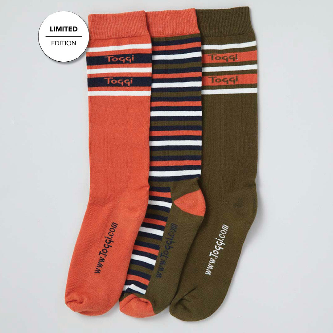 Toggi Retro-Streifen-Bambussocken - Terrakotta/Marineblau/Salbei / Einheitsgröße ist auf Lager und wird versandt, sobald es wieder verfügbar ist
