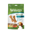 Perfect treat to keep dogs busy with the fun shape of rice bone. Totally edible and easily digestible, these vegetarian and all-natural treats help to freshen breath and reduce buildup on your dog's teeth. Dental hygiene is as important for dogs as it is for humans, and WHIMZEES dog treats make it easy for dogs to clean their own teeth and satisfy all kinds of chewing needs.
