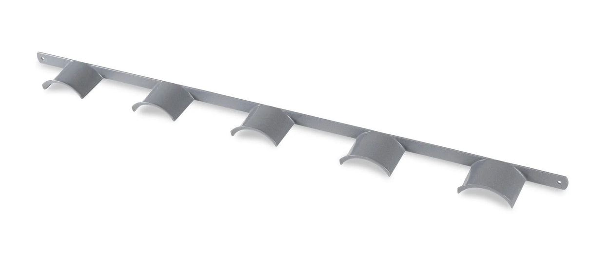 Wall hanging plastic coated rack to hold five bridles. Total length: 101cm.
