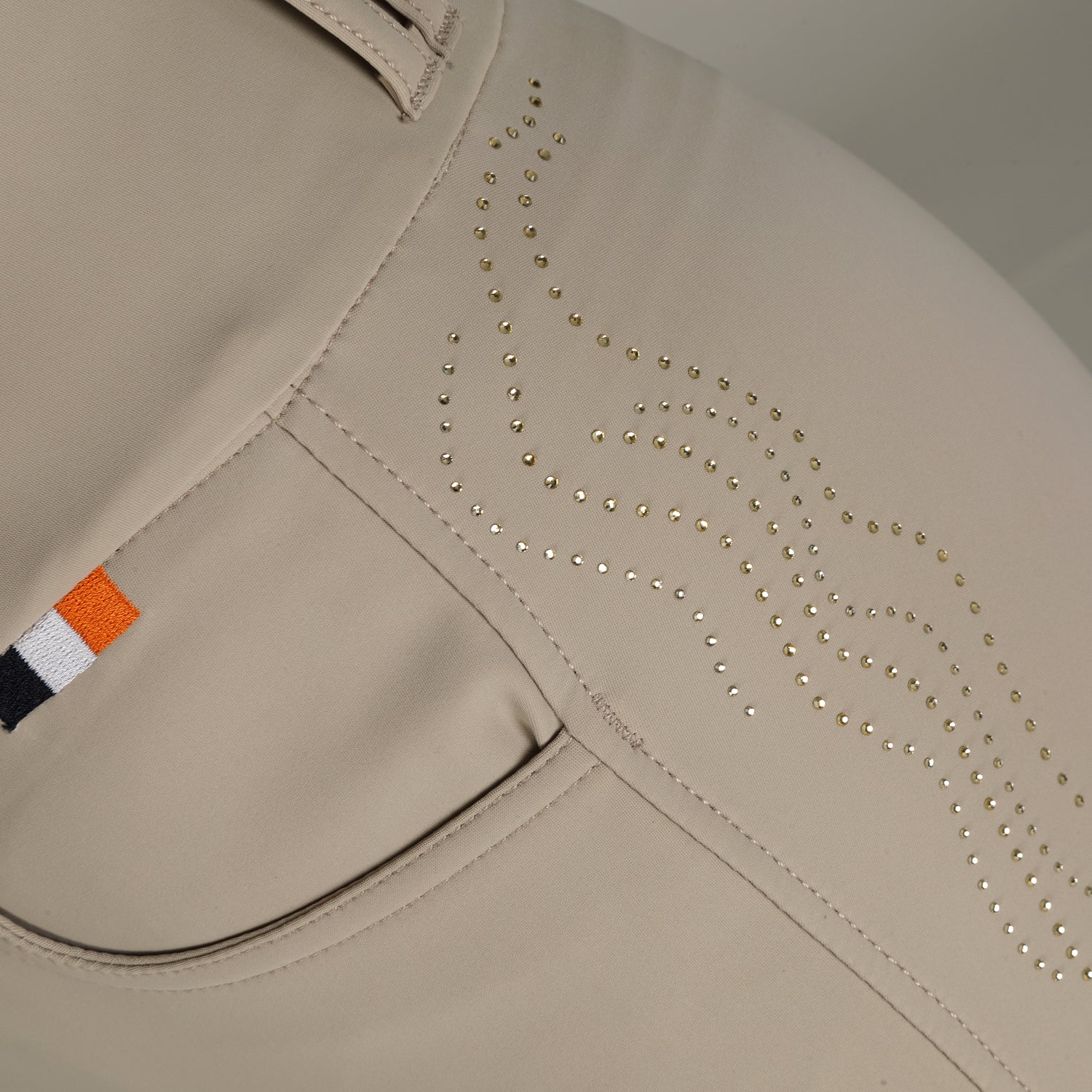 Bringing ultimate freedom feel to your riding, Optima legwear is the perfect choice for competition or training alike. The Deluxe breeches are designed with professional styling to meet GB competition rules, making them the perfect choice for competition or training alike. Sparkling crystal diamante embellishment adds eye-catching glitz at either side of the hip.