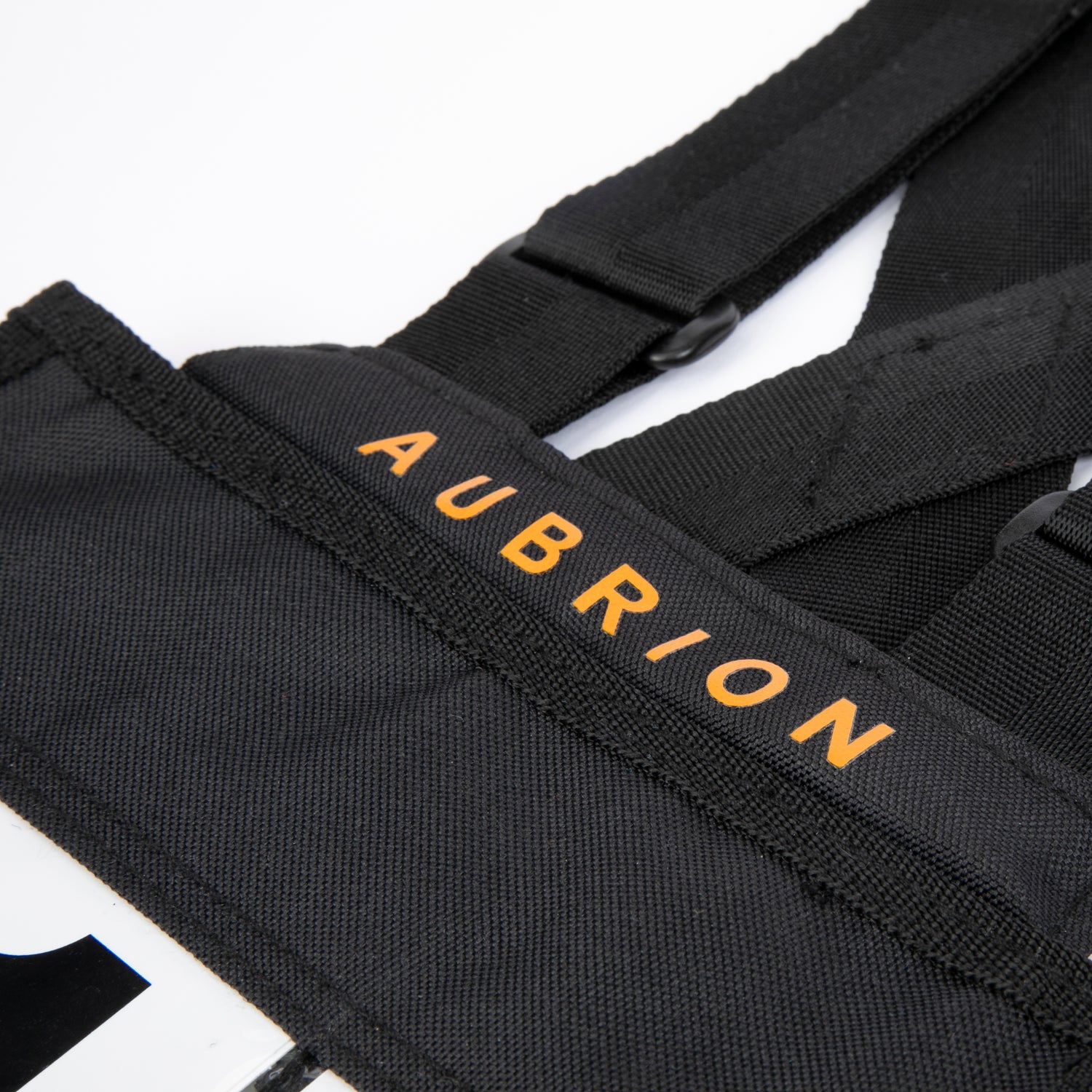 Robust number cards are inserted at the reverse of the display via touch close flaps. Proportioned for children, adjustable shoulder straps allow a snug and secure fit. At the waist are elastic straps, one with a slider and a quick-release buckle for easy entry and securing. Aubrion prints to the front and back.