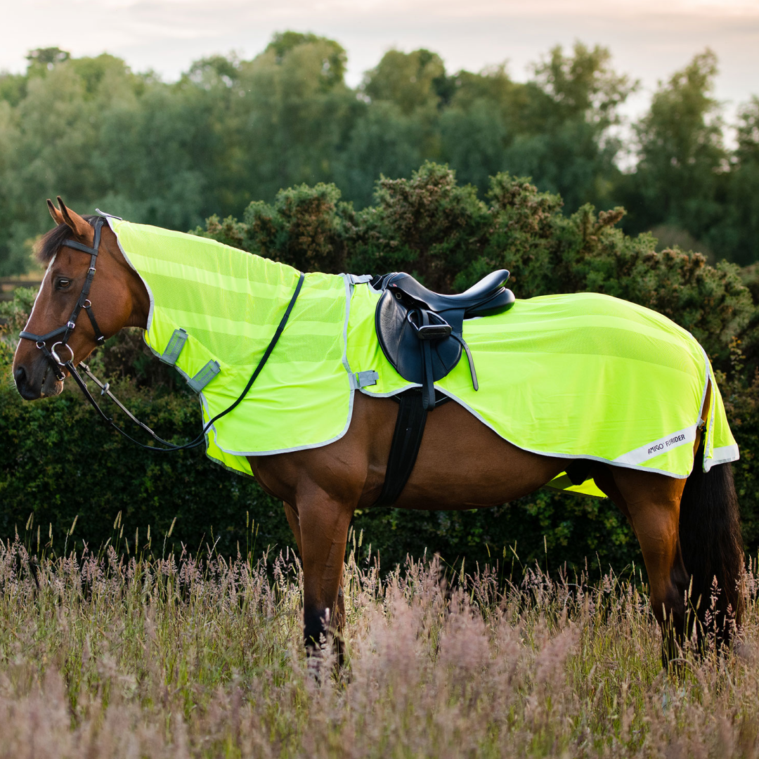 - Grande capuche amovible à ouverture facile pour protéger le cou et les épaules du cheval, boucle pour attacher au bridon pendant l'exercice, bandes de sécurité réfléchissantes.