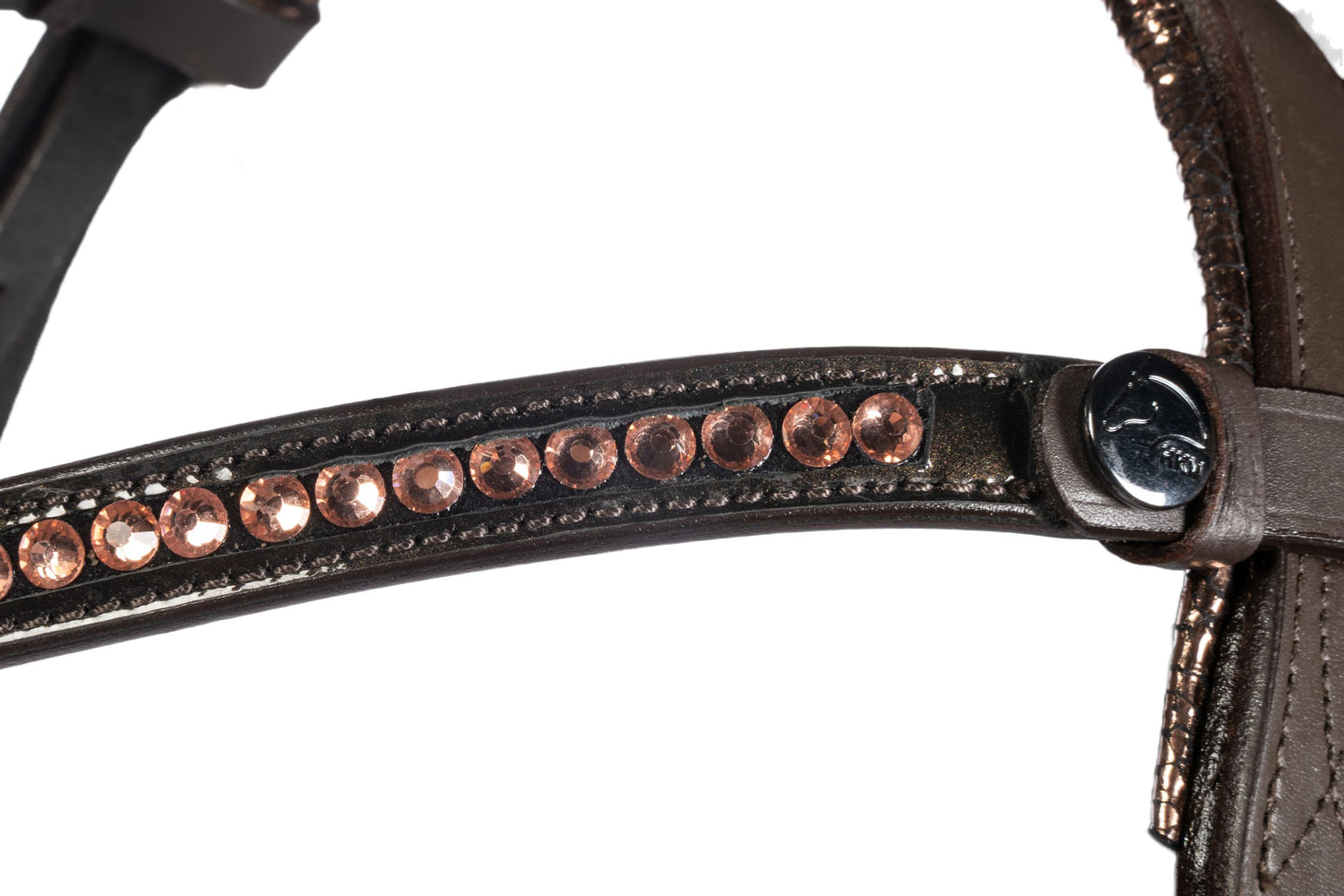HKM Bridle -Sofia- - Brown/Rose Gold / Pony est en rupture de stock et sera expédié dès qu’il sera de retour en stock.