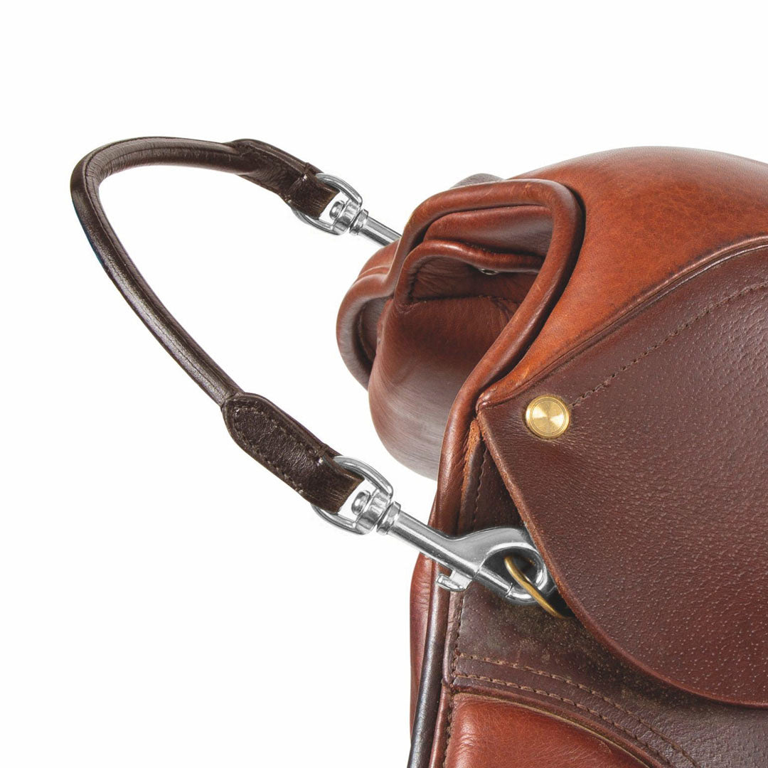 Une aide utile pour les cavaliers qui ont besoin d'une stabilité supplémentaire en selle. Idéal pour les cavaliers débutants ou handicapés pour un regain de confiance et une aide à l'équilibre. Également utilisé par les athlètes équestres expérimentés, permettant une position plus droite et particulièrement utile lors de la conduite de chevaux jeunes ou nerveux. Sangle en cuir roulé confortable avec clips de déclenchement pivotants aux deux extrémités pour attacher aux anneaux en D de la selle.