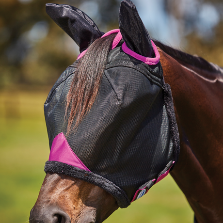 Prix habituel De $130.00Prix unitaire /IndisponibleMasque anti-mouches zébré Hy Equestrian avec oreilles et nez amovible
