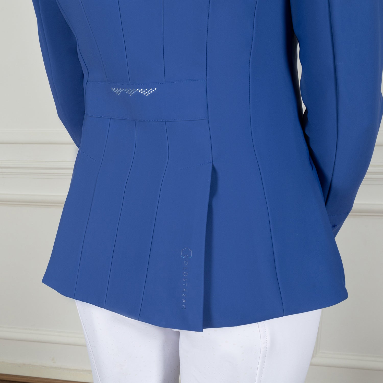 This classic-cut jacket is refined by a collar, detailed with hexagonal tonal diamantes and sophisticated co-ordinating suede edging. The jacket is fastened with a hidden zip and three embossed buttons and has two concealed front pockets with durable zips and hexagonal pulls lined by suede. Exquisitely finished with classy Coldstream branding, including diamante emblem to the sleeve and silicone logo to the back hem.