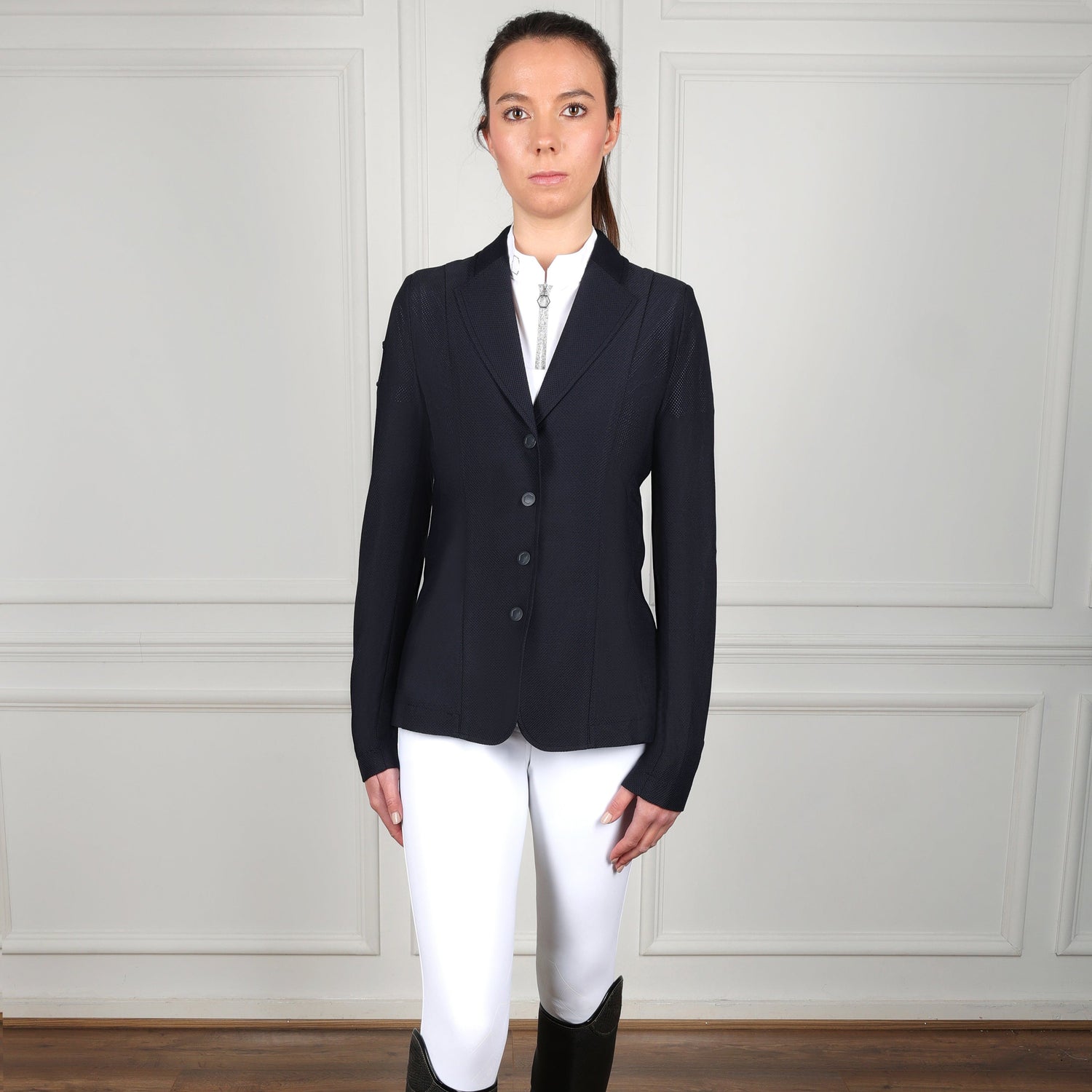 Refining ventilation in the ring, the Parkhill Mesh Show Jacket has been expertly crafted using an entirely mesh textile to provide 365 degree airflow. Designed to minimise heat retention and provide a sleek lightweight look, the minimalistic design and delicate poppers create the ideal feeling for competing in hot climates.