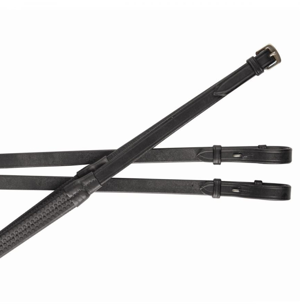 - Ces rênes ont un insert en cuir européen de la meilleure qualité sous le caoutchouc.