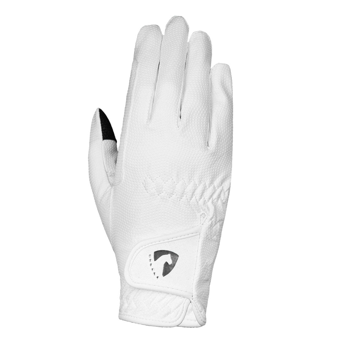 Magnifiquement conçu avec un superbe logo métallique avec des détails en strass, sur un matériau PU synthétique doux, avec un renfort placé sur les doigts des rênes pour un gant plus durable, tout en offrant une protection optimale à vos mains, afin que vous puissiez vous concentrer sur vous-même et votre cheval. .