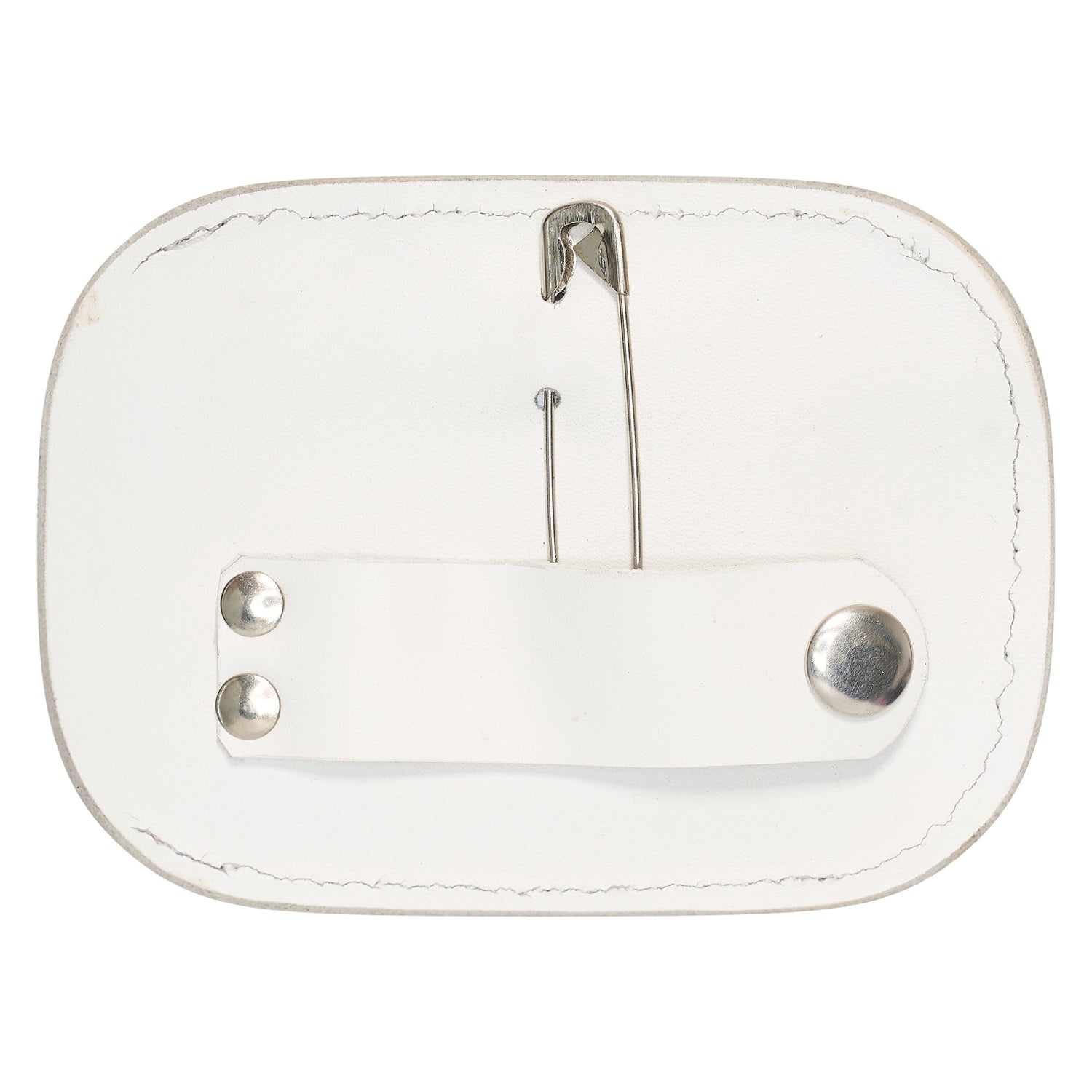 The square version of the glitter competition numbers combines a shiny front with practical safety pin and snap button closures. They hold up to three digits and come in a set of two.