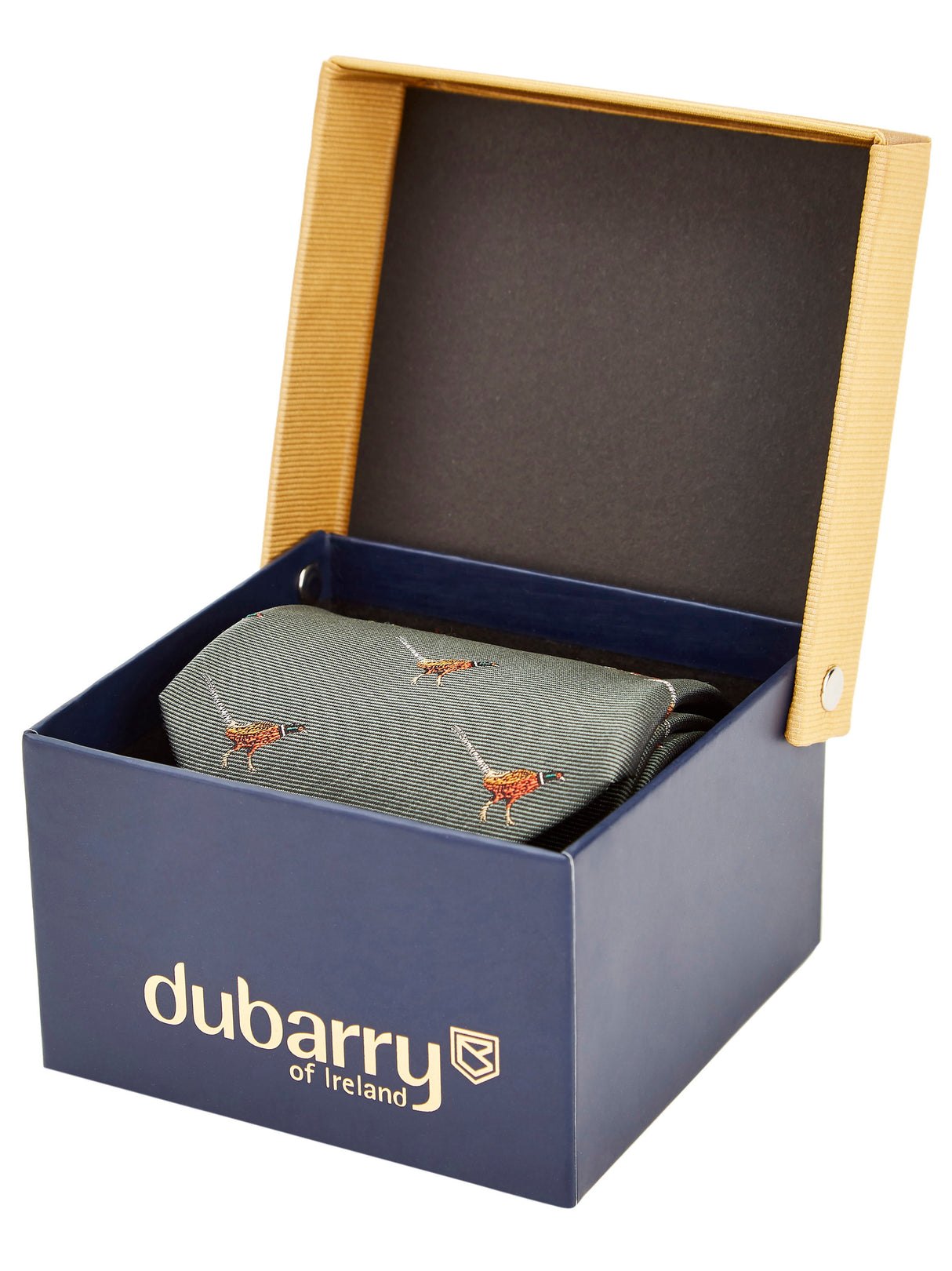 The Dubarry Madden is a finely crafted, 100% silk woven tie adorned with a classic pheasant motif. Elegantly designed and fully lined for a premium finish, this tie measures 8.5 cm at its widest point. It comes beautifully presented in a Dubarry gift box, making it a perfect gift for any occasion or a refined addition to your wardrobe.