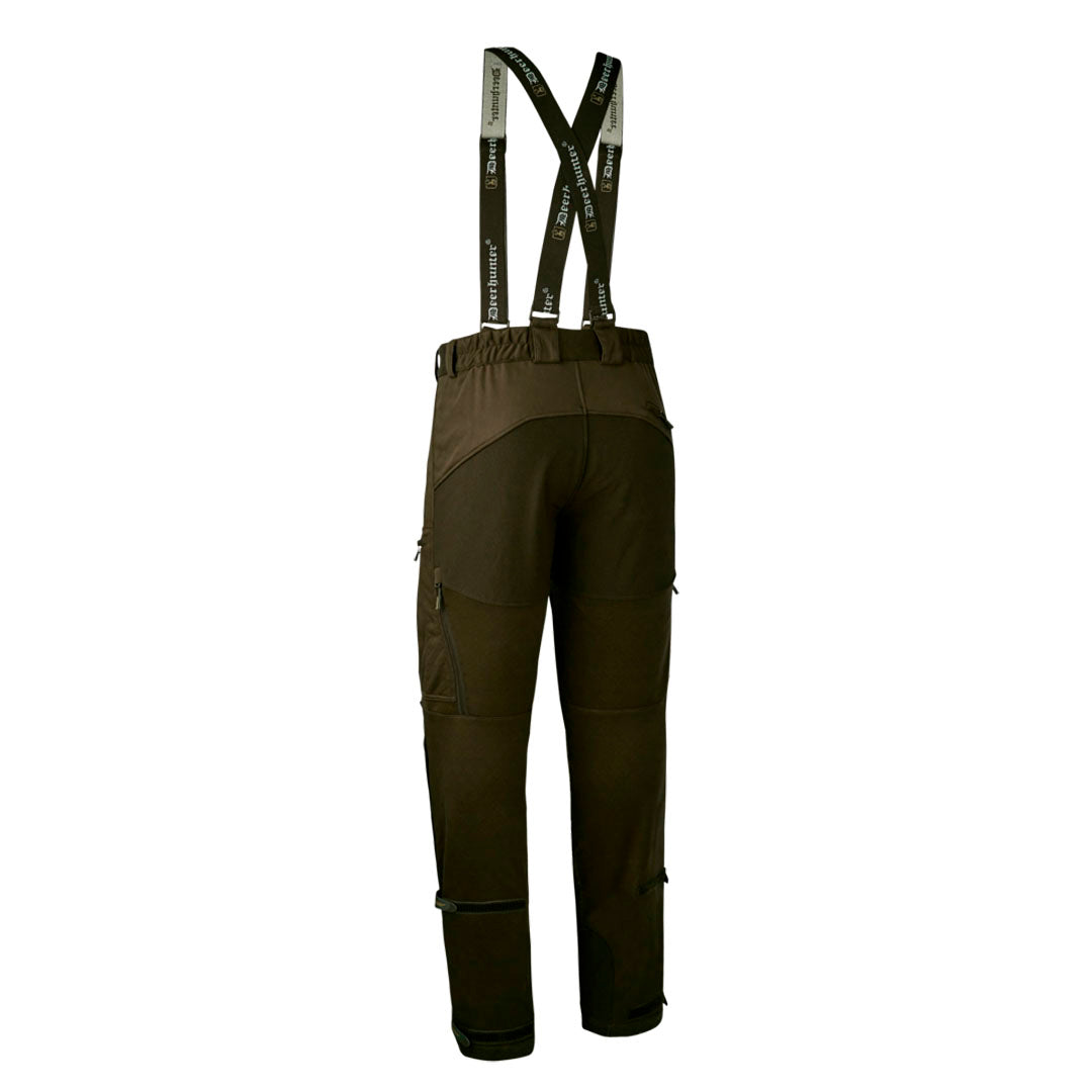 Le pantalon softshell Deerhunter Excape pour hommes est doté d'une taille élastique et de bretelles amovibles, conçues pour un ajustement confortable et sécurisé.