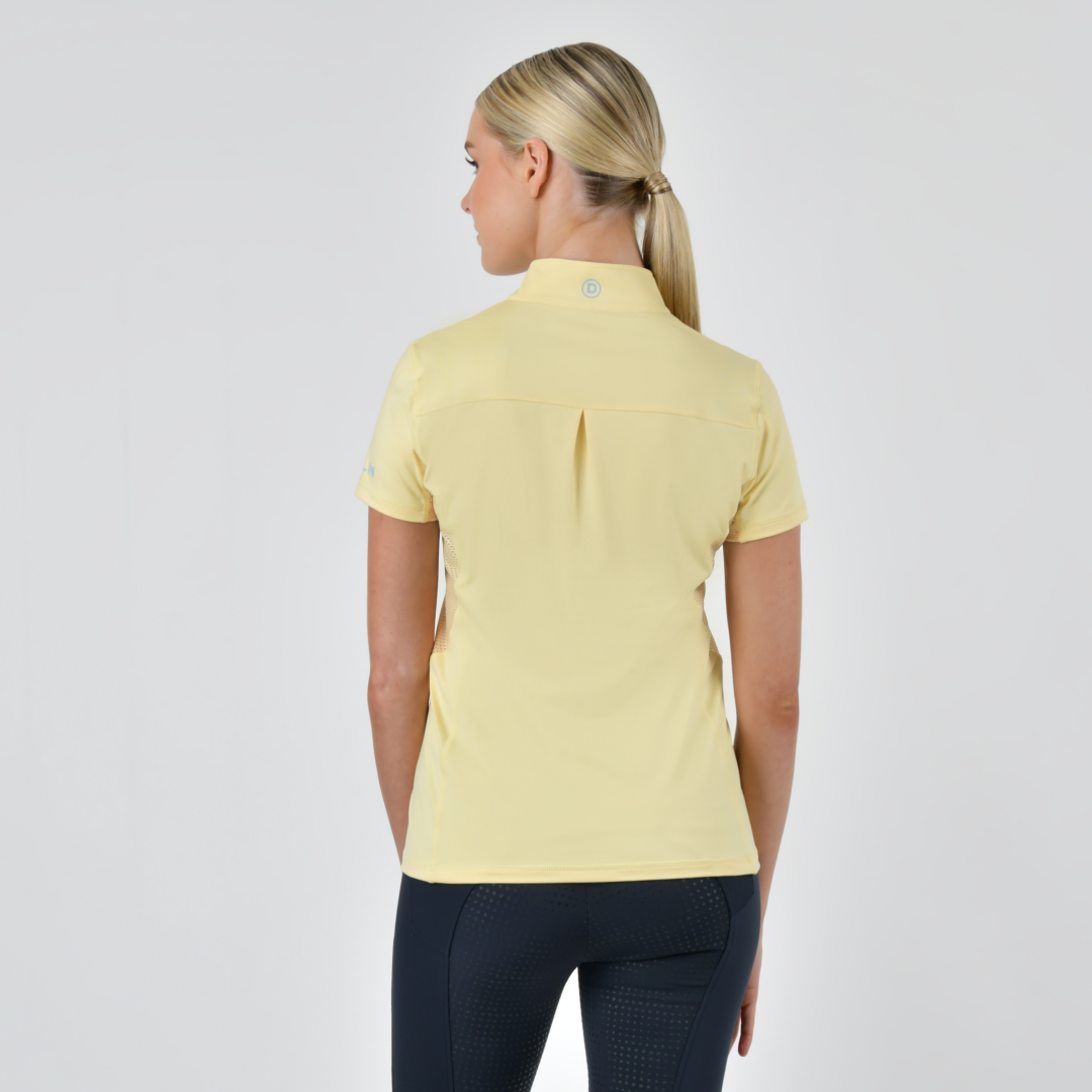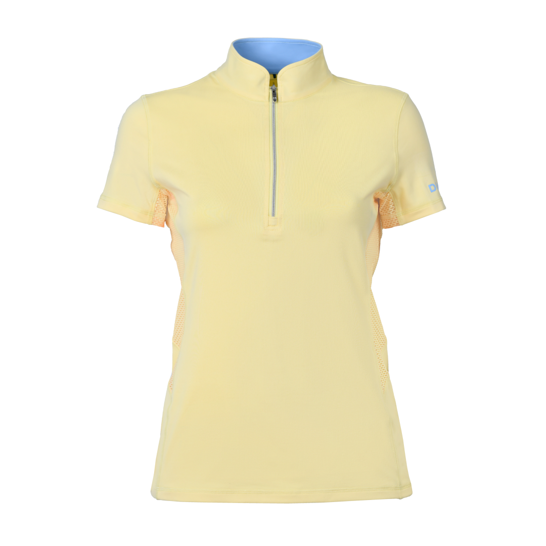 Doté de la technologie Comfort Dry qui fonctionnera pour vous quelle que soit la météo, offrant un contrôle de l'humidité pour un confort toute la journée. Panneaux latéraux en mesh, sous les manches et empiècement dos. L'extérieur couleur pêche élimine la saleté, le foin et les crins de cheval, pour vous donner une apparence élégante. Un col montant avec une demi-patte zippée, dans un style semi-ajusté pour offrir un ajustement confortable.