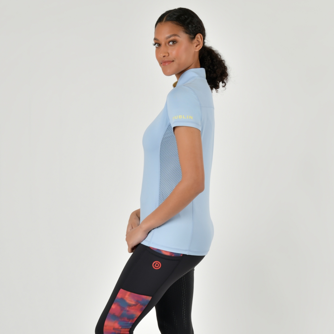 Le Dublin Kylee Short Sleeve Ladies Shirt II est un excellent haut polyvalent à manches courtes respirant fabriqué à partir de tissu jersey bi-stretch avec un indice de protection solaire de 50+ et un extérieur couleur pêche.
