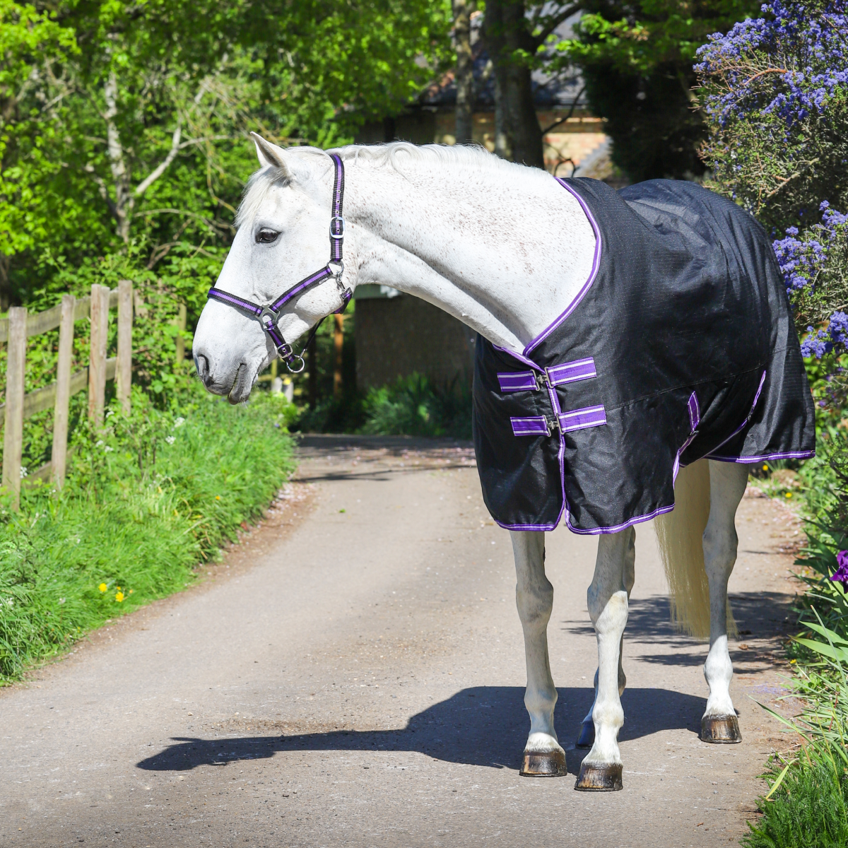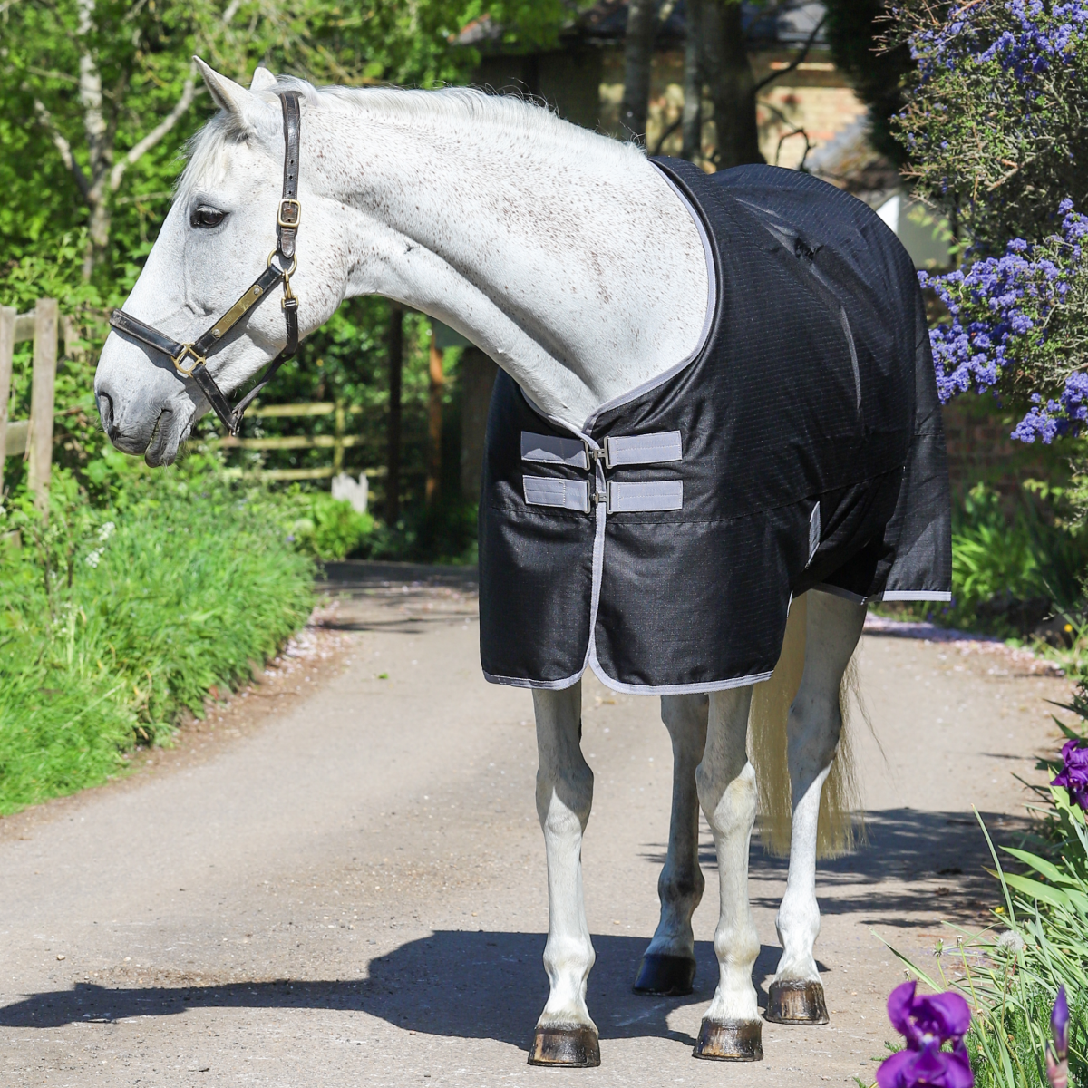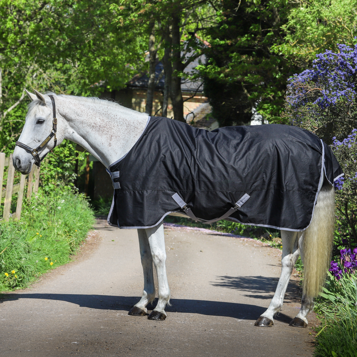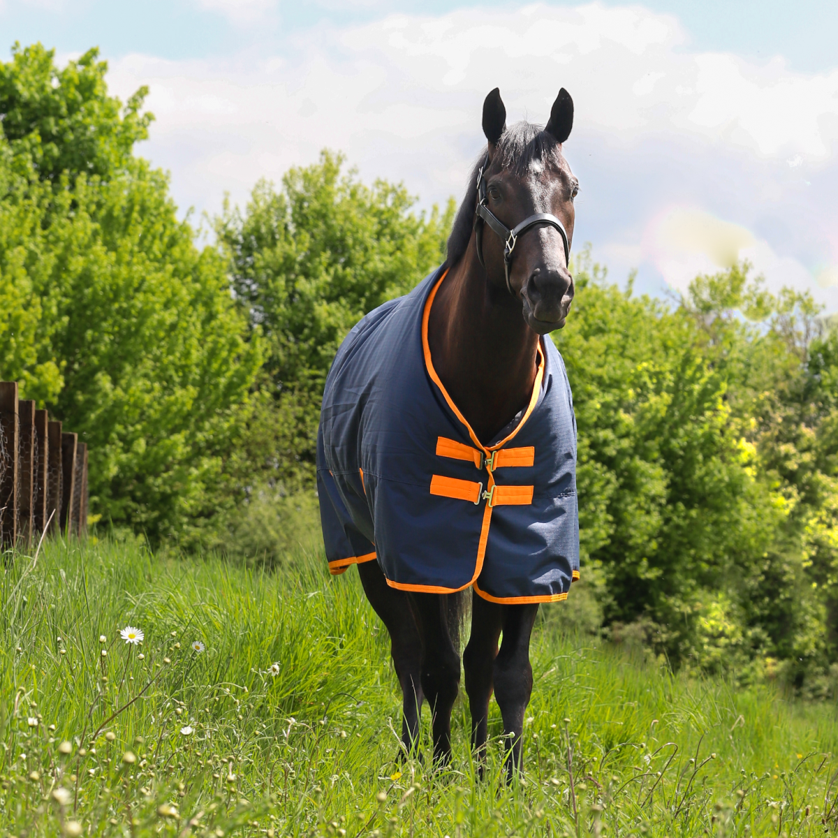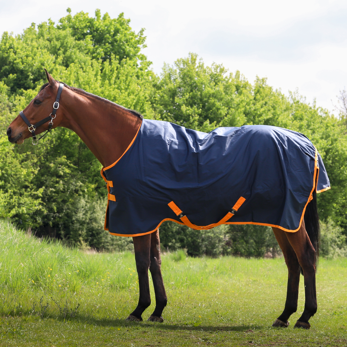 Cette couverture 100 % imperméable avec un rembourrage de 0 g est idéale pour garder votre cheval au frais et au sec.