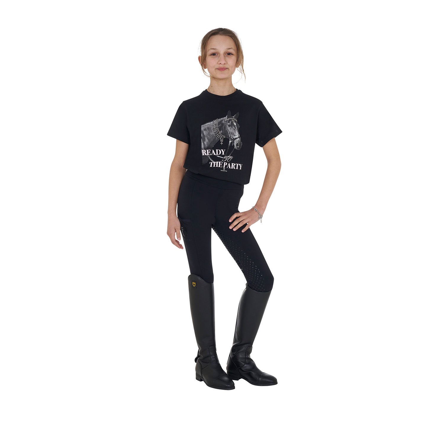 Equestro Girls' Ready To The Party Cotton T-Shirt With Rhinestones - Black / 12 Years est en rupture de stock et sera expédié dès qu’il sera de retour en stock.