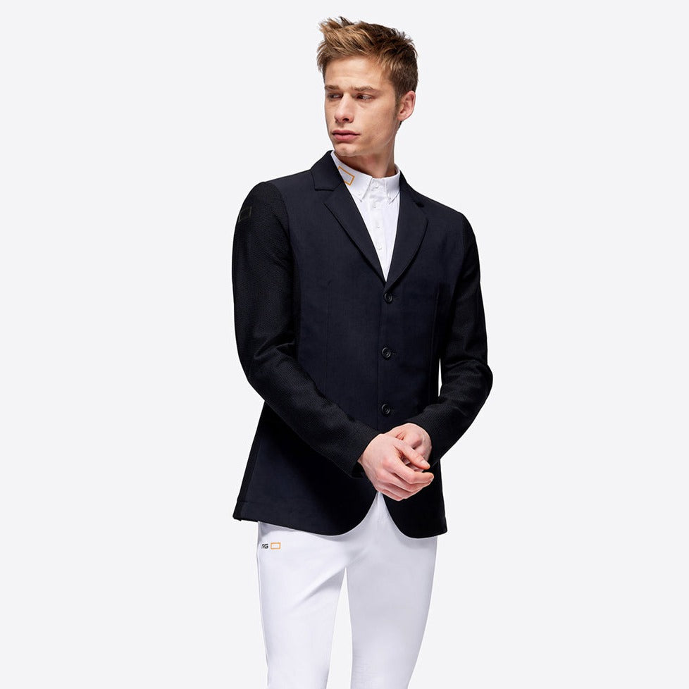 The Rider's Gene classic-cut riding jacket is enhanced with an alcantara collar and contrasting piping. The technical 4-way stretch material combines elegance and performance: it moves with your every motion while providing breathability, water repellency, and antibacterial properties. The jacket features two front pockets and front button fastenings, along with a discreet embossed logo on the shoulder.