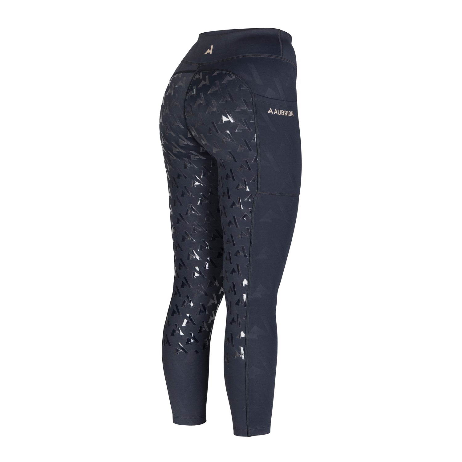 The Aubrion React Winter Tights have a soft brushed inner for insulation against the cold weather. The tights feature a full silicone seat for grip in the saddle and silicone on the inside of the supportive waistband to prevent the waistband from dropping over time. The thigh features a useful phone pocket.