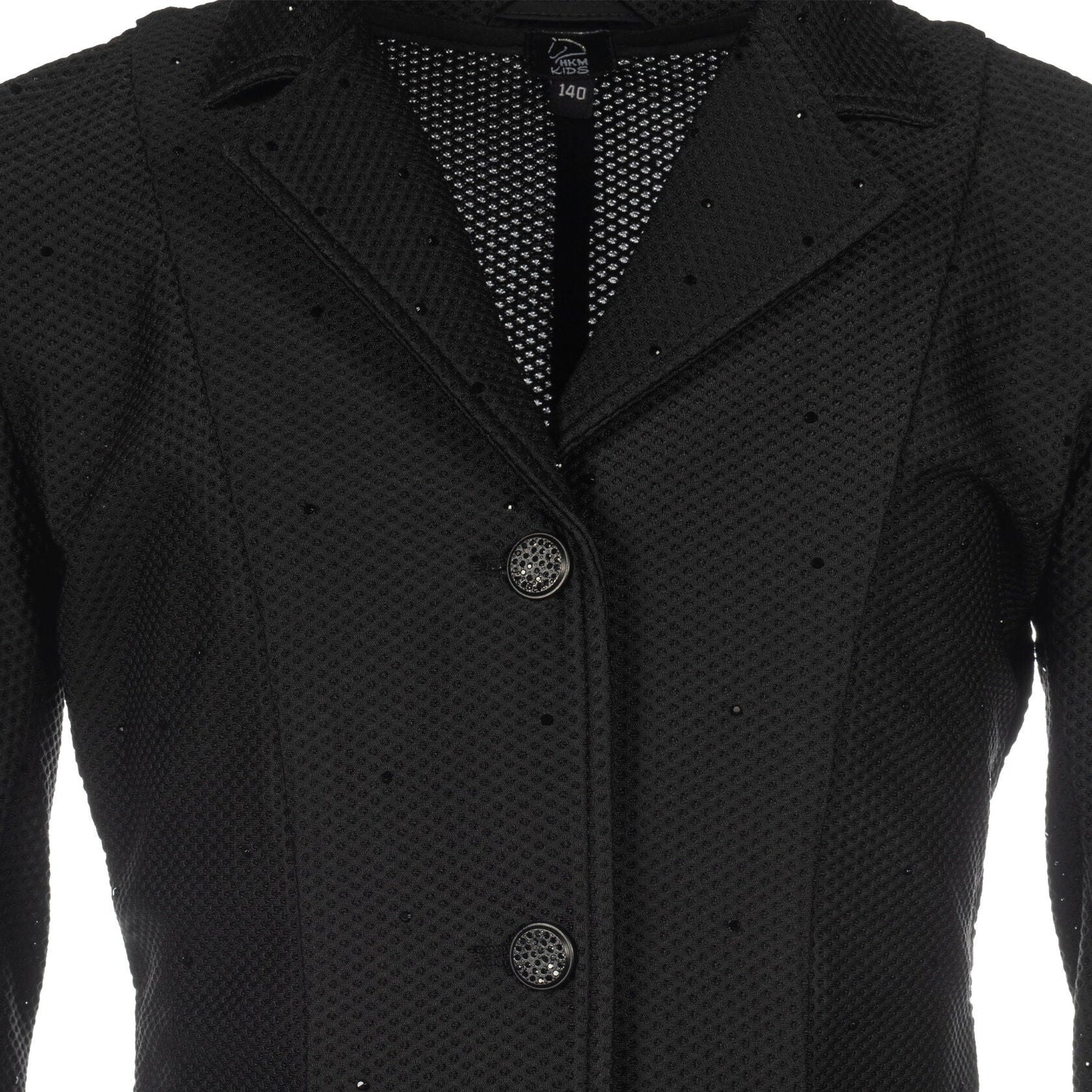 The HKM Children's Competition Jacket Crystal Kids offers young equestrians an elegant and functional option for competitions. Its lightweight mesh material allows for breathability and comfort in warmer weather, while the tailored cut and integrated riding slits provide freedom of movement. Elegant details like the concealed zip and rhinestone trim add a touch of sophistication. Plus, the crease-resistant and elasticated material ensures a perfect fit for every rider.