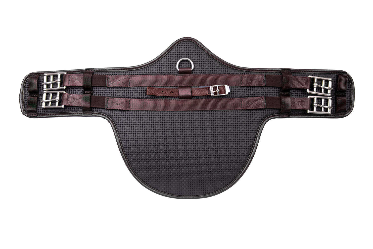 Protection de crampons de forme anatomique pour favoriser la liberté de mouvement, en particulier au-dessus des clôtures. Matériau super résistant mais doux texturé pour permettre la circulation de l'air. Façonné pour plus de confort. Large coussinet ventral avec attache martingale et anneau. Se déplace confortablement sans frottement ni frottement. Élastique aux deux extrémités avec des boucles à rouleaux en acier inoxydable. Facile à nettoyer.