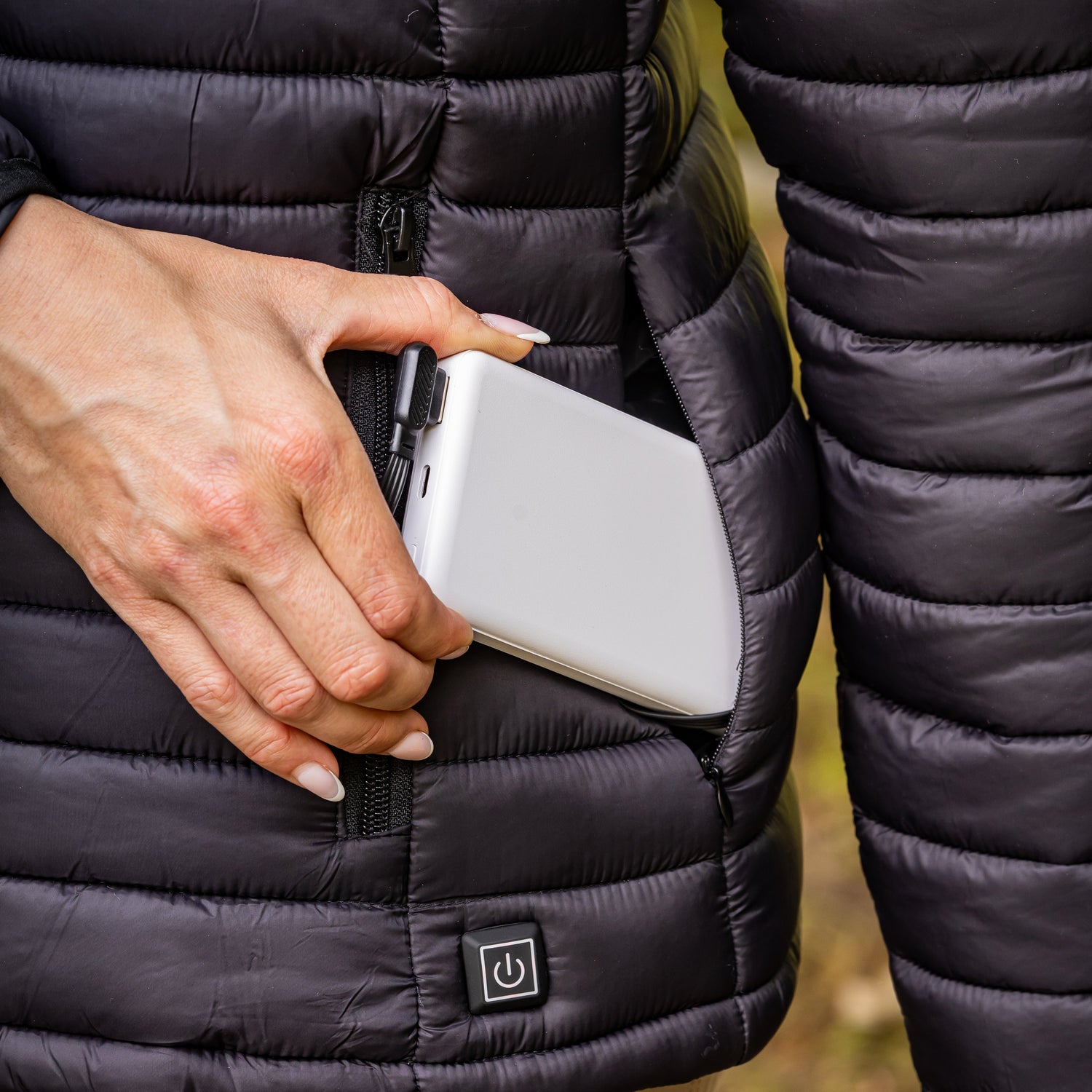 - Separate power bank pocket