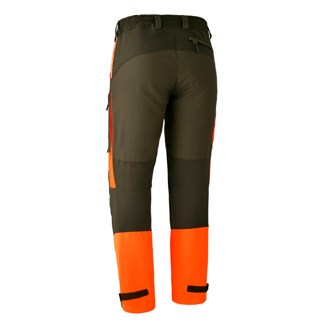 Conçu avec un mélange orange et vert vif pour garantir la sécurité, qui est un aspect clé de toute activité de chasse. Les genoux préformés, la taille élastiquée, les zones extensibles dans 4 directions et les chevilles réglables avec sangle et velcro permettent un ajustement confortable tout en conservant la maniabilité.